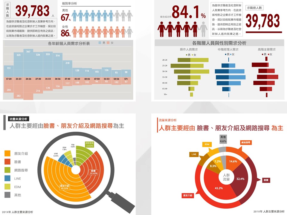 ■ 透過色彩對比,突顯想表達的數據,瞬間抓住觀眾眼球
