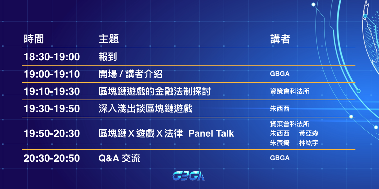 透過社群小聚活動,提供區塊鏈遊戲的資源平台、運營知識,並精選爆款區塊鏈遊戲來台分享實戰經驗,若你正在好奇什麼是區塊鏈遊戲或正計劃開發區塊鏈遊戲,都歡迎一起參與交流!