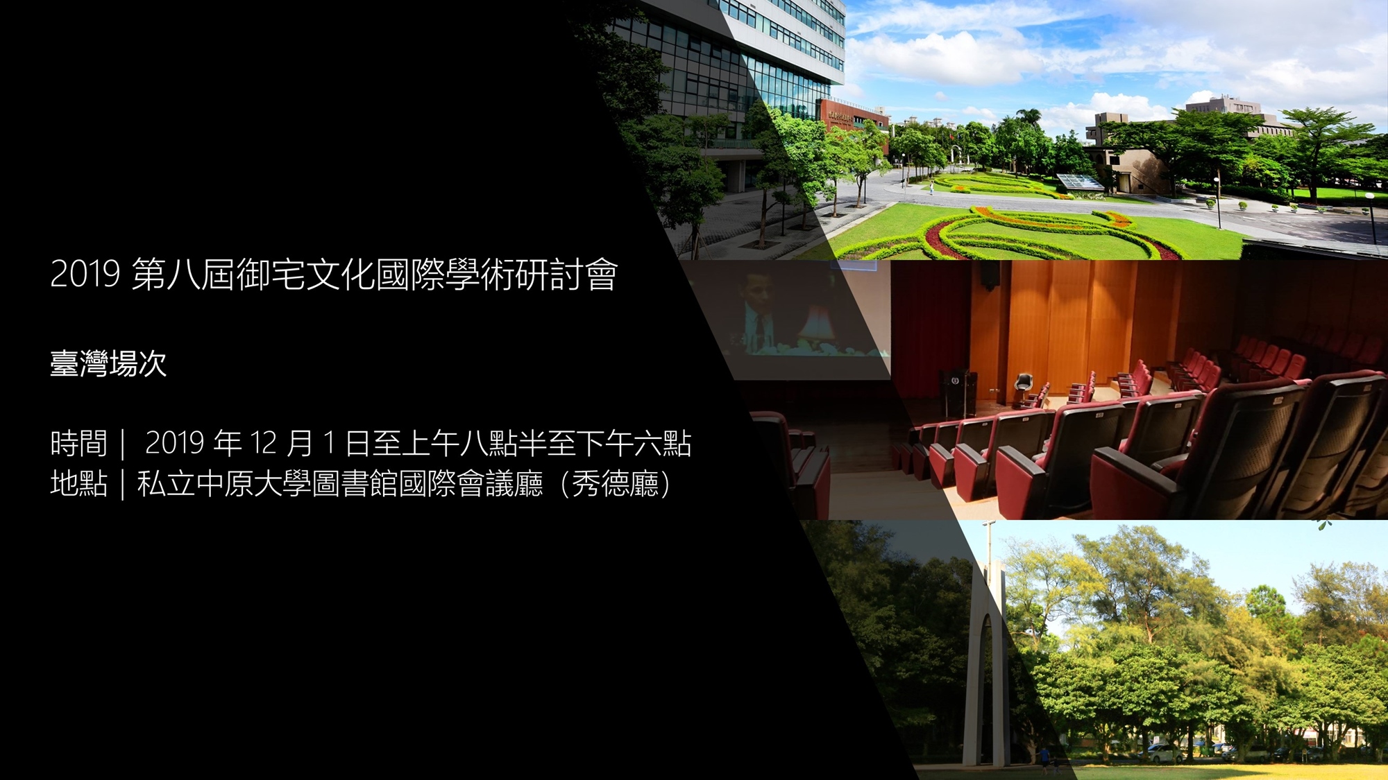 本屆「 2019 第八屆御宅文化國際學術研討會暨巴哈姆特論文獎」將首次舉辦臺灣和日本場的跨國研討會。臺灣場預定於 12 月 1 日於中原大學圖書館國際會議廳(秀德廳)舉行,日本場預定於 12 月 23-26 日在日本慶應大學舉行。