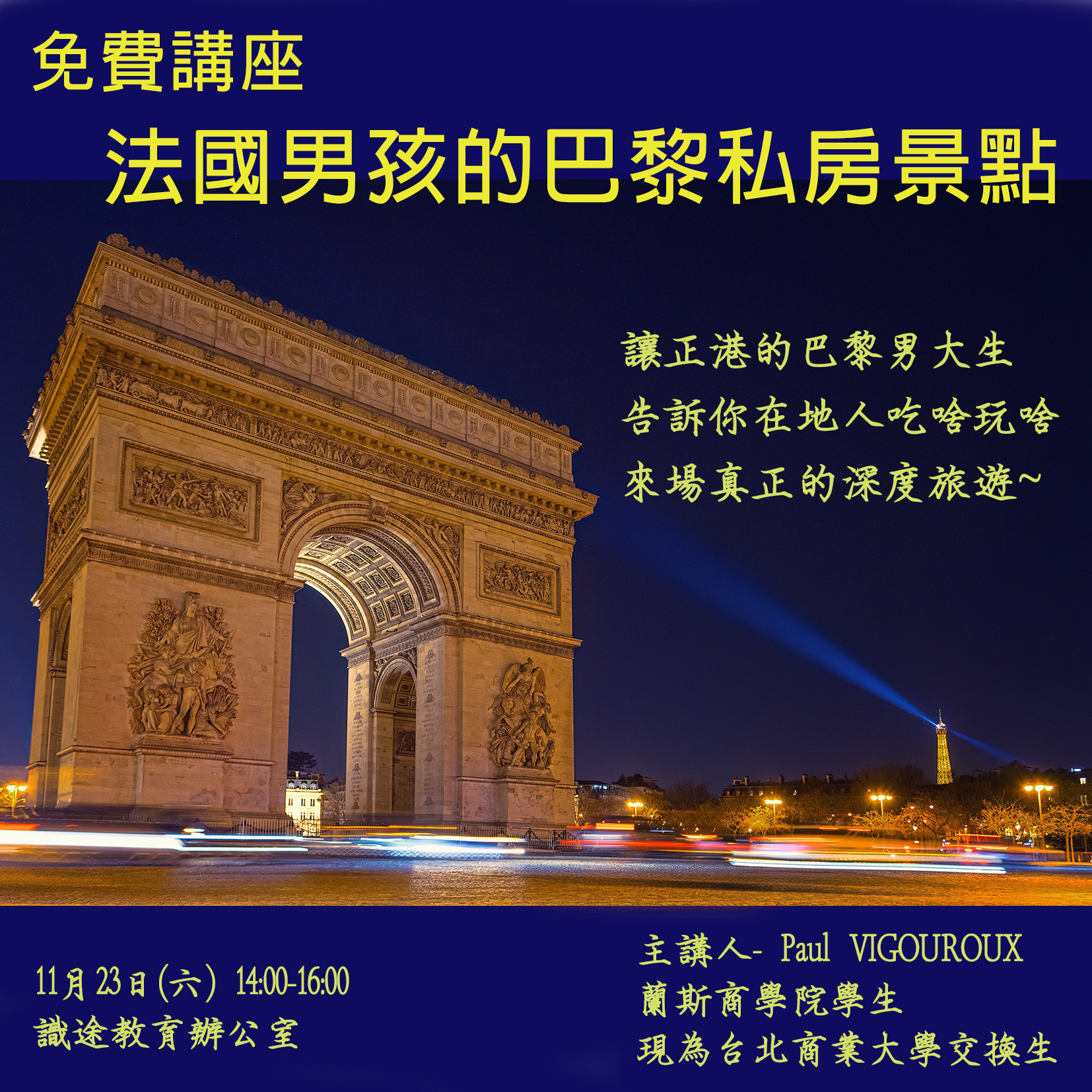 講座也會提到如何在巴黎看足球賽、跳蚤市場、各種傳統市場及超級市場