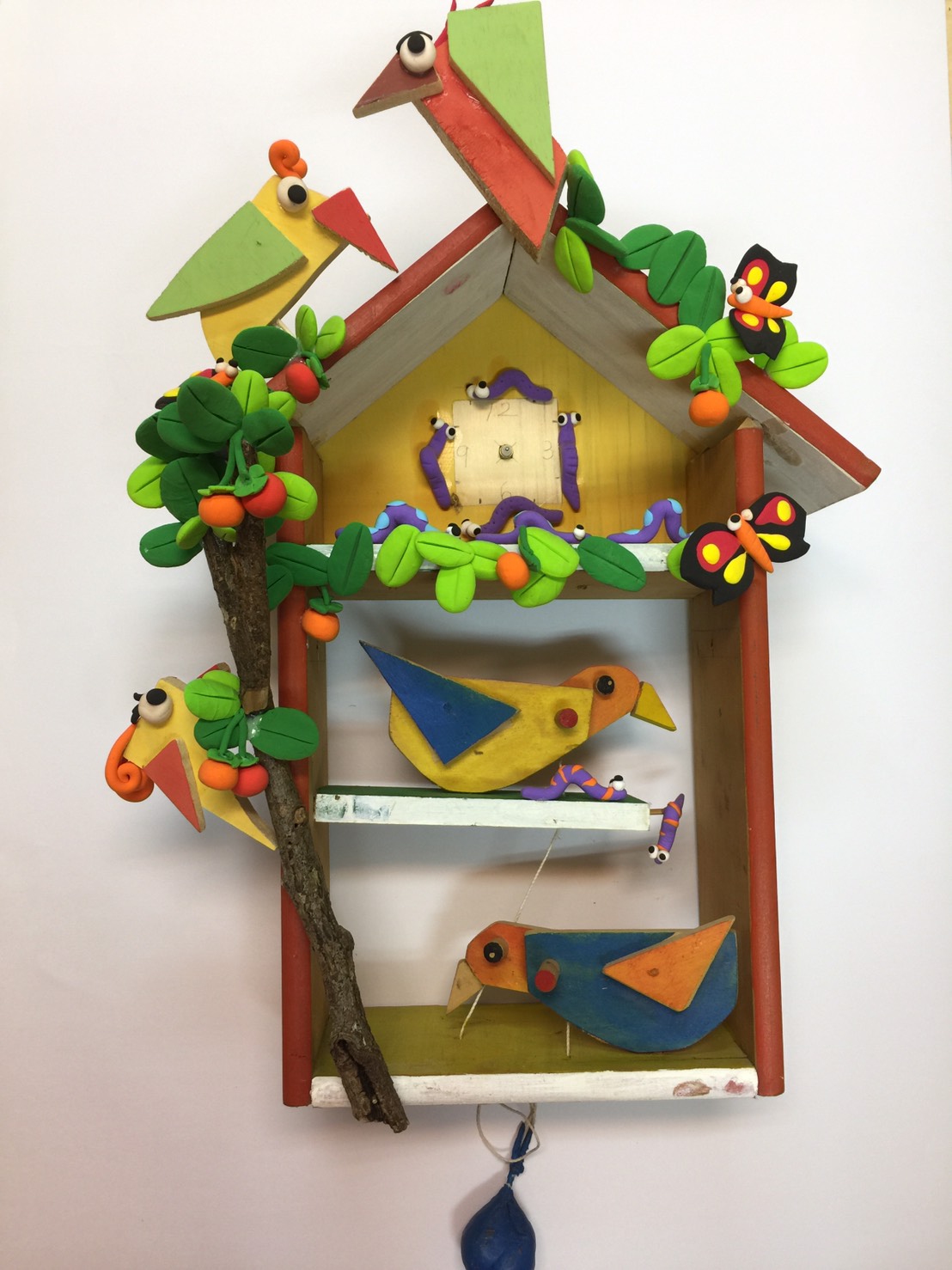 這次木工課的主題,利用鐘擺原理的往復運動牽動啄木鳥,叩、叩、叩上下兩隻啄木鳥便奮力啄起木頭來。簡單的物理原理運用在手作木器上,一件平凡的時鐘作品瞬間變有了生命活動力!