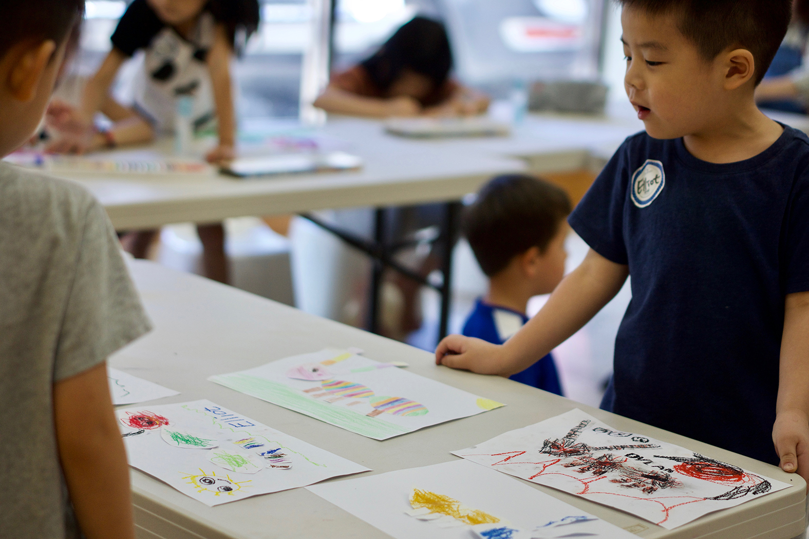 用美式方式帶領營隊小朋友們,學習營隊規則與紀律,學習團隊合作與競賽,體驗不一樣的團隊生活。從引導小朋友們進行分組,每一小組組員發揮想像力,設想團隊名稱、團隊口號,並嘗試設計製作海報、隊旗等道具。