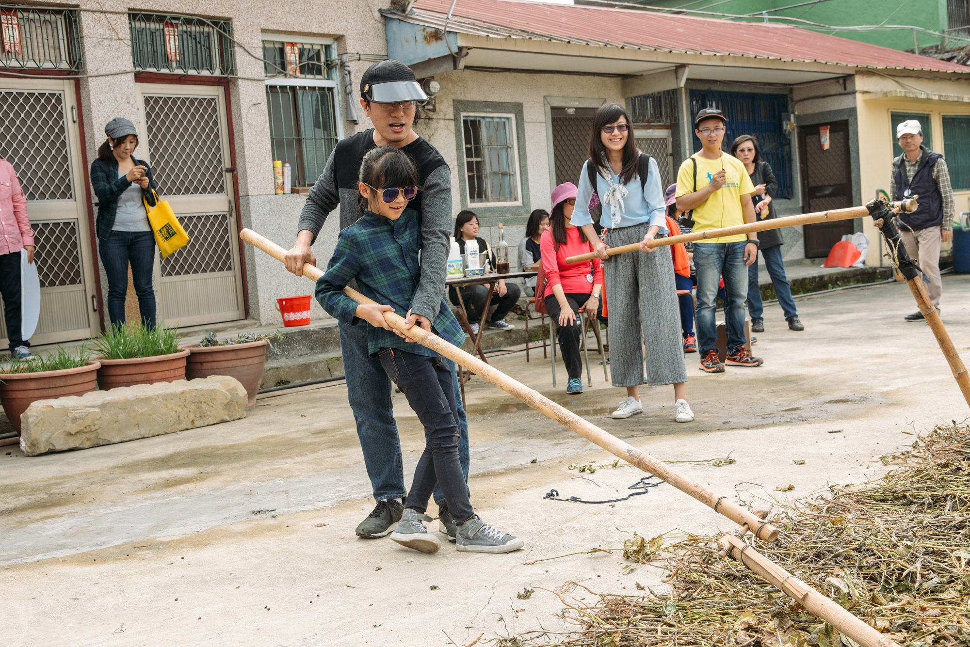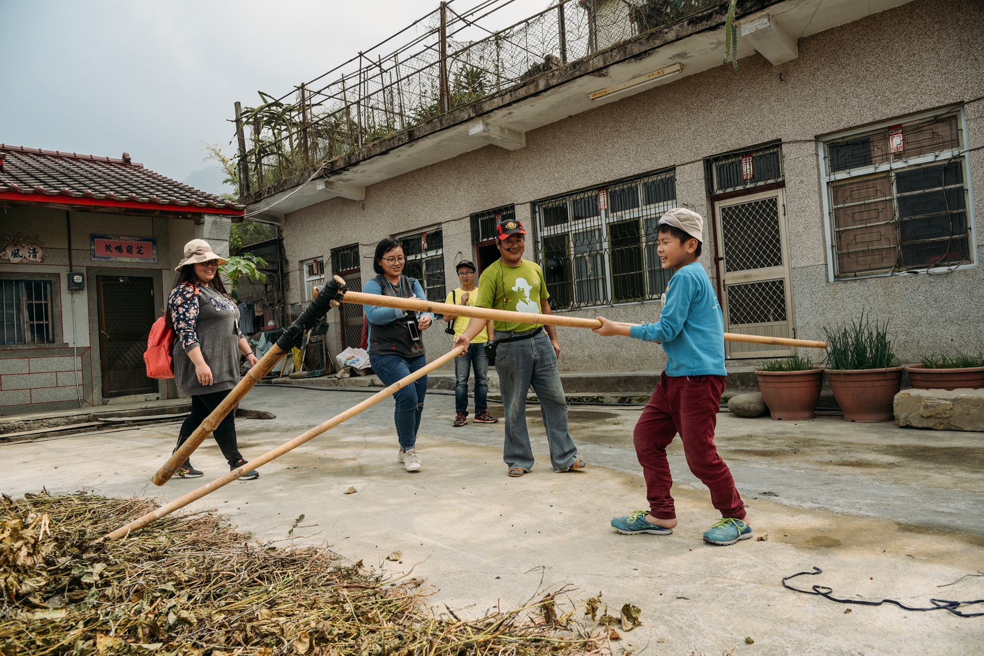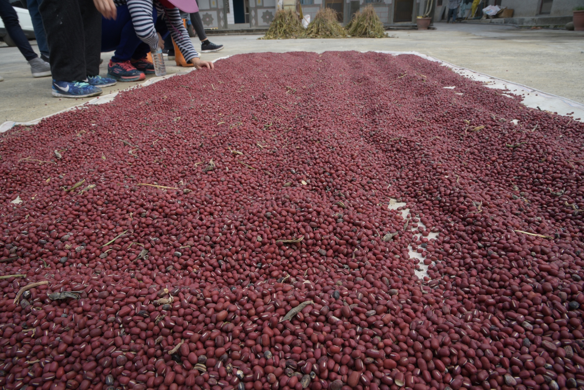 ‣‣ 餐後,散步在三合院古厝,一同與小農體驗曬豆莢的樂趣。