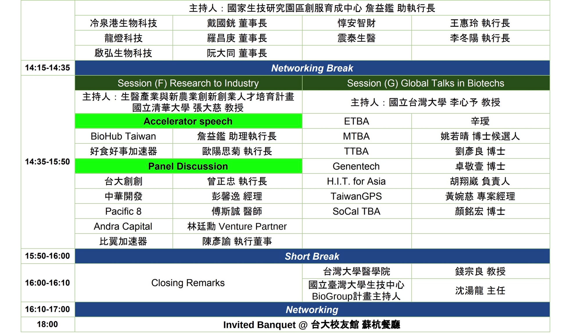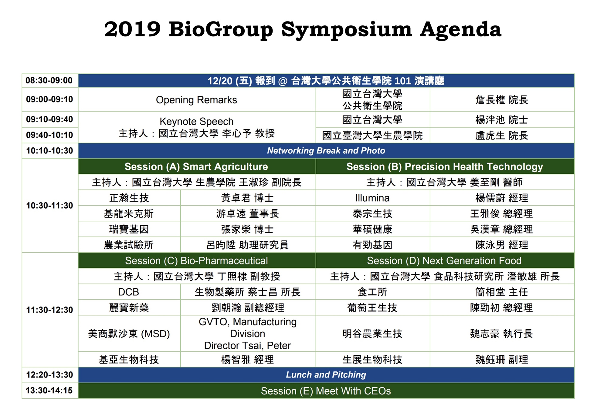 今年議程相當精彩,囊括了所有生技相關產業,並邀請了產官學研的各路菁英前來發表精采絕倫的演說。包含了有: