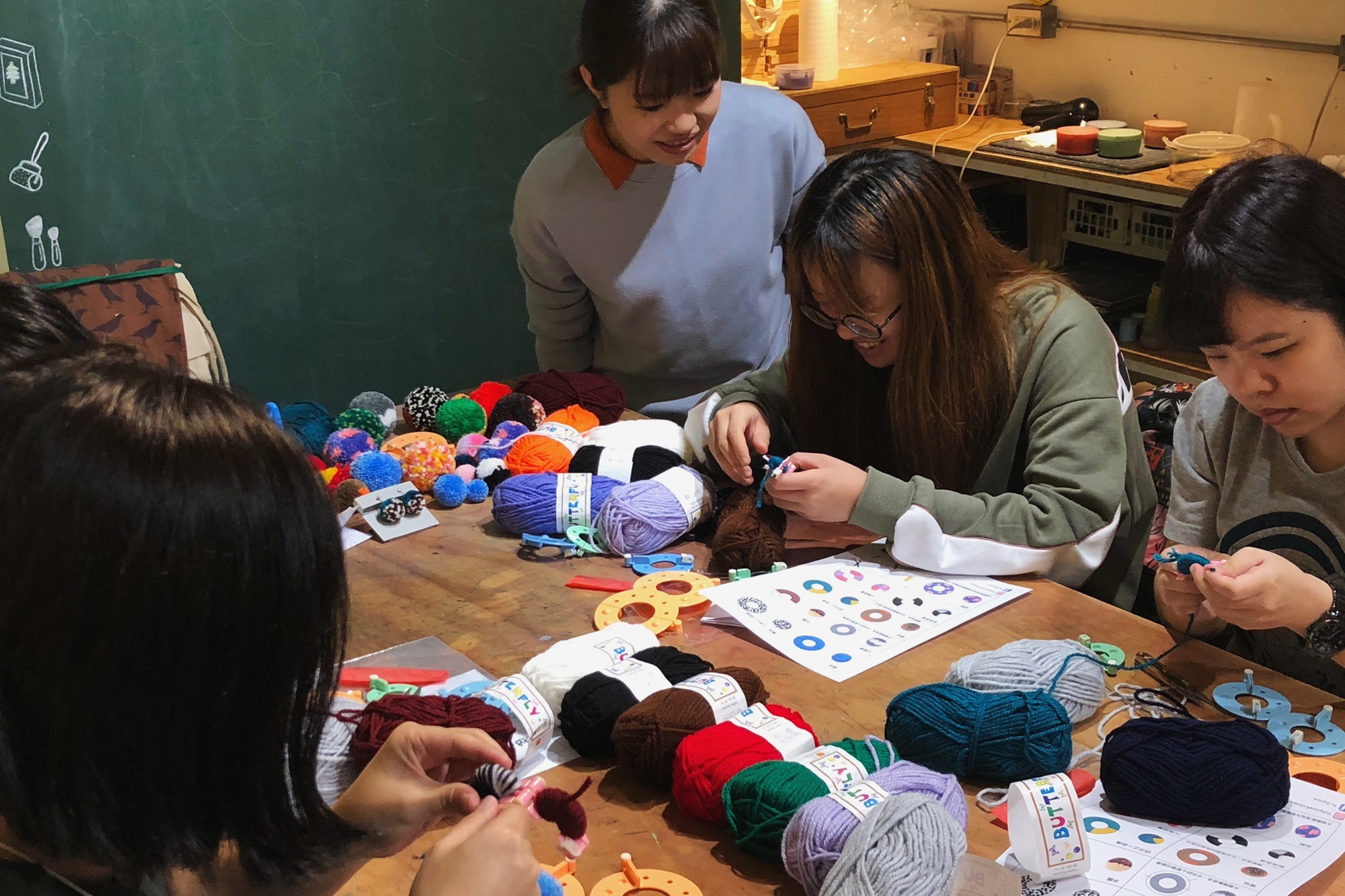 透過不同的繞線組合,把喜歡的色彩組合在一起,創作出屬於自己獨一無二的毛球。