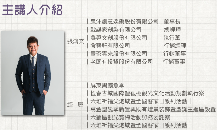 - 為維護課程品質,請提前10分鐘報到入場,逾時不候,敬請見諒。