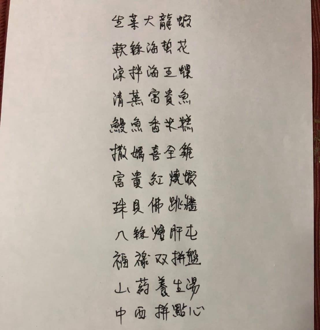 前戲是的前菜冷盤就有三道:大片的龍蝦,厚切的軟絲,塊狀的海蜇,片切的螺肉,每一種刀功都意圖讓海鮮滋味更出眾,也讓味道充滿層次。鮮甜的清蒸魚、溫潤的鰻魚米糕讓美味進入主軸,衘接以甘草粉及肉桂粉的甘甜為主調燦師手路撒嬌雞、酸甜的富貴紅燒蝦,溫柔為菜色注入幸福清爽的感覺,澎湃的台式佛跳牆,百年老菜八絲燴肝屯,再次加碼讓味蕾衝上最高潮。接下來來點輕鬆的炸物拼盤跟點心和周圍朋友聊聊天,再來碗醒酒清爽的山藥養生湯爽快潤潤喉⋯⋯說了這麼多,每個台灣人每年至少都該吃一次辦桌!今年年底,當然就這桌了啦!
