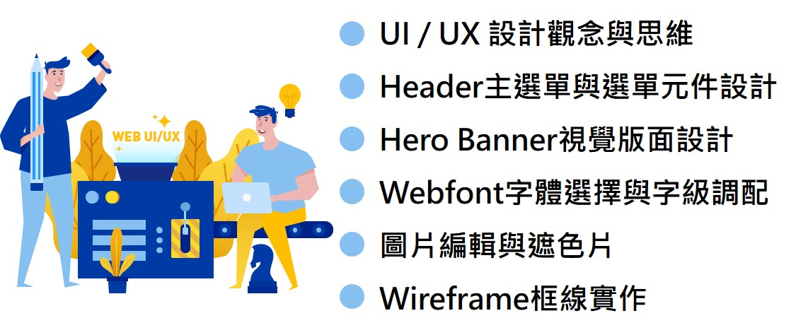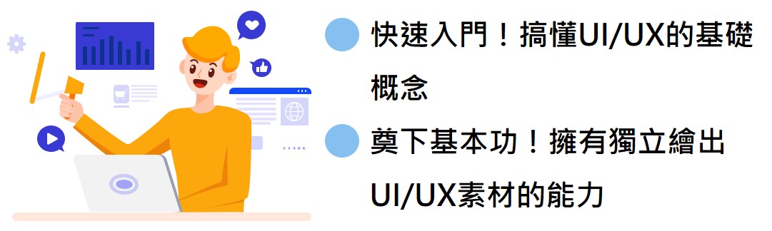 UI/UX設計,在資訊量爆炸的時代越來越被重視與被需要,原因在於消費者接收資訊的時間短,對於網站視覺與介面感受皆高於過去,因此設計師在設計時需要比過去更重視互動性,需考量更多使用體驗與情境,以及使用過程是否流暢。而多數設計師並無UI/UX設計基礎,就被公司要求設計網頁UI介面,該如何思考網頁互動、並設計出網頁/APP需要的介面與素材?更創造好的用戶體驗呢?