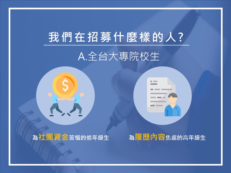 | 結合專業學習+全國夥伴人脈網建立+數十位經理級人物前表現自我機會, |