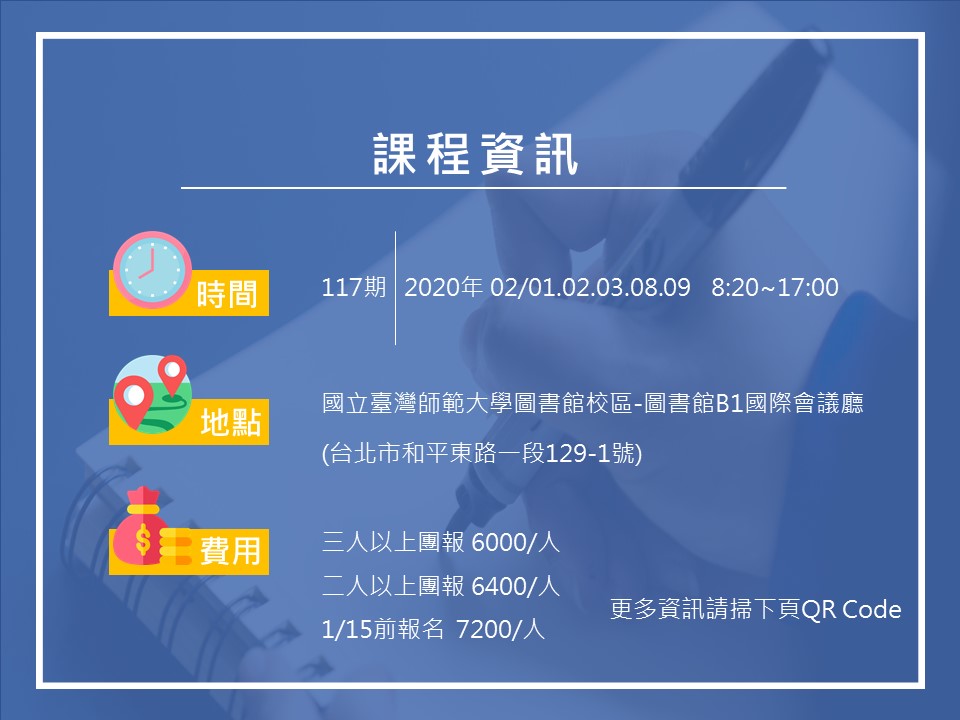 | 117期:2020年2月1(六)、2(日)、3(一)、8 (六)、9(日),5天40小時【假日班】 |