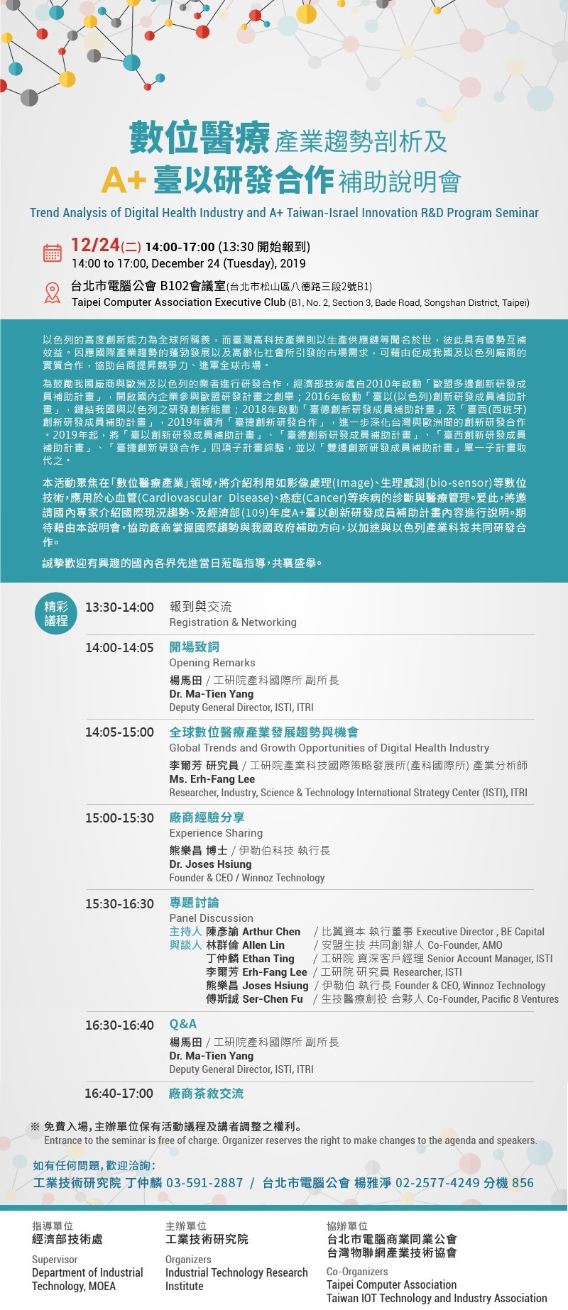 數位醫療產業趨勢剖析及A+臺以研發合作補助說明會
