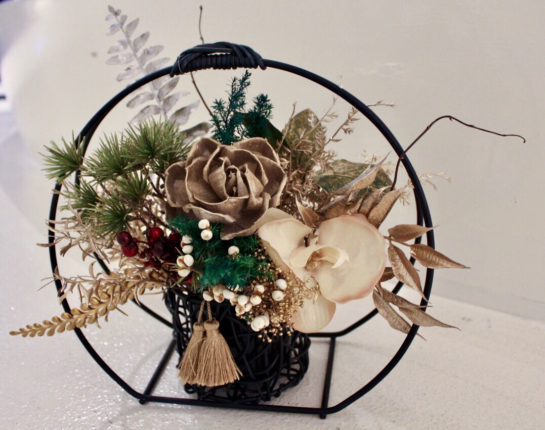費用:1,580元,含日本進口花器、擬真植物素材、索拉花與永生花。