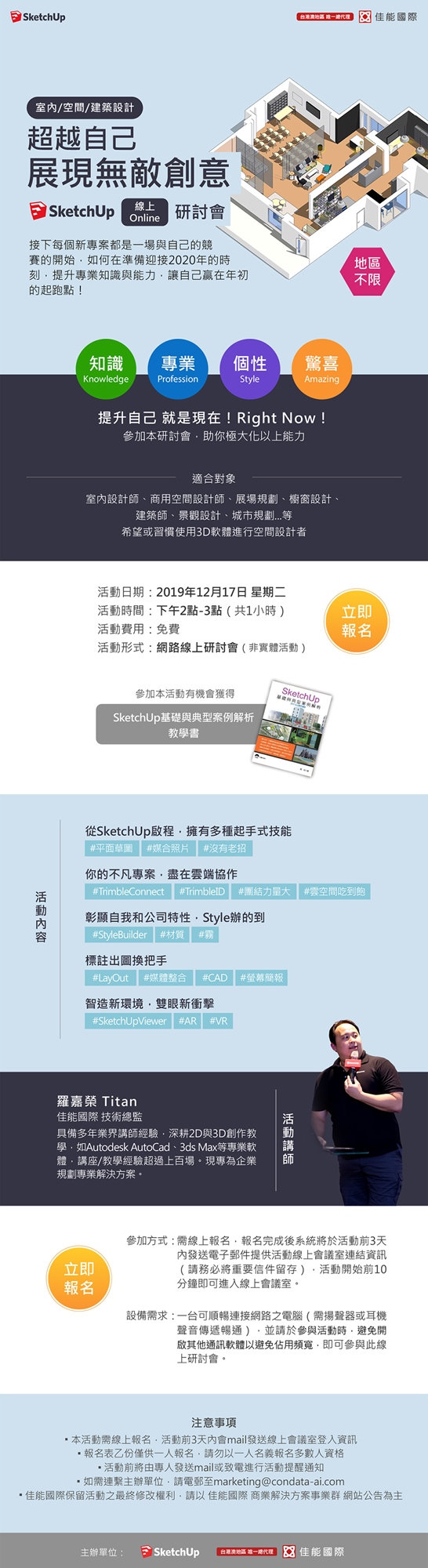 室內/空間/建築設計【超越自己 展現無敵創意】SketchUp線上研討會
