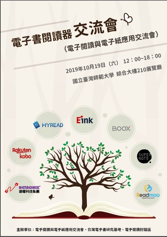 合辦單位:Netronix 振曜科技、Readmoo讀墨、凌網科技Hyread、樂天Kobo、E Ink元太科技、Onyx文石科技、Supernote超級筆記