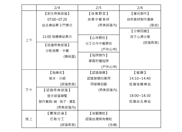 活動日期:2020/2/4~2/6 (三天兩夜)