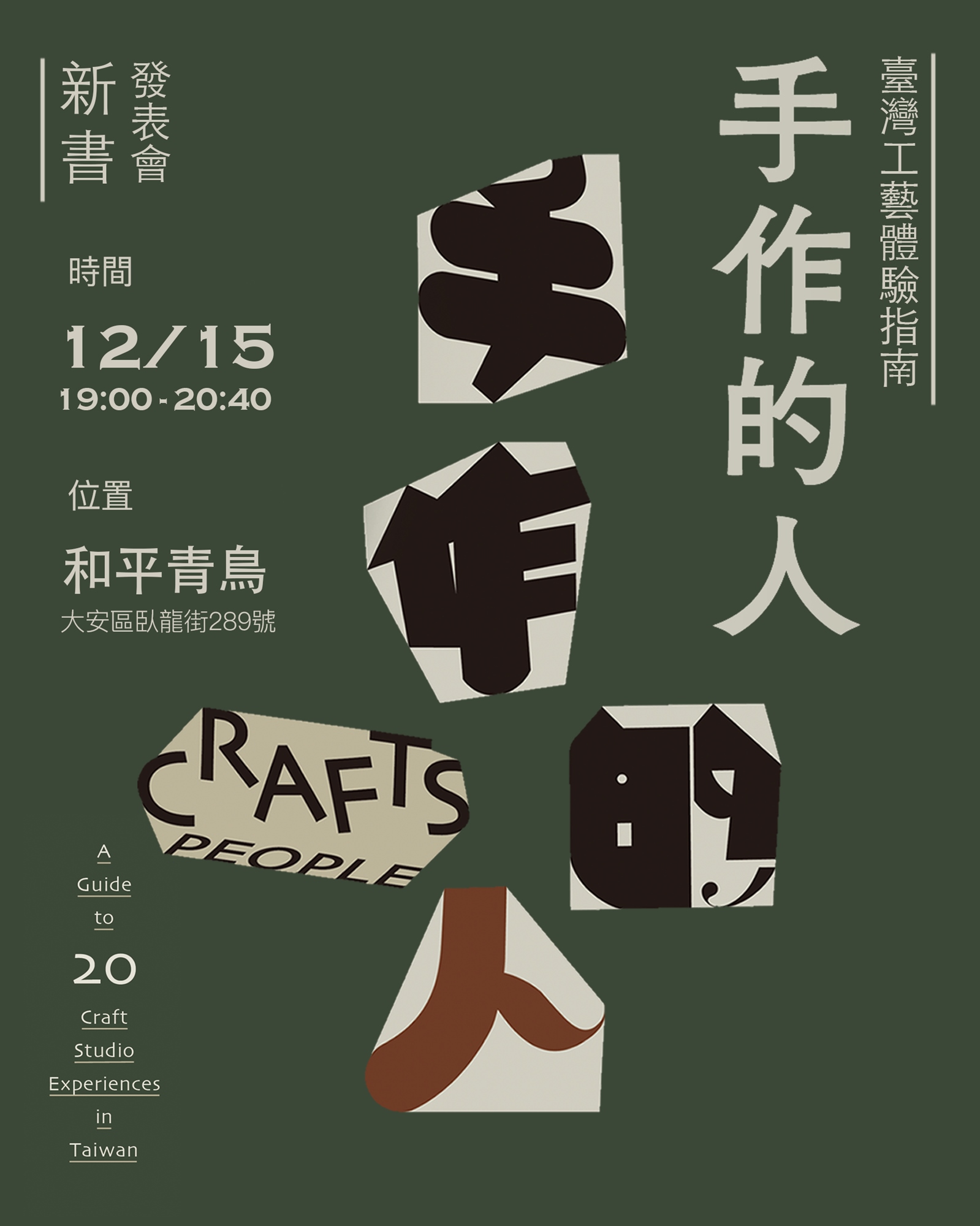 在此書即將出版之際,希望邀請對臺灣工藝或手作體驗有興趣的你,一起來聽聽我們編製此書的理念與過程所獲得的感動,並邀請到本書所採訪的工藝師之一「藺子工作室」的創辦人廖怡雅,和我們分享創辦「藺子」的理念以及所遇到的挑戰。