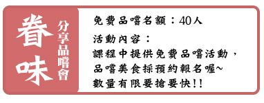講堂課程採線上預約報名制度,曾在蘋果花愛鑄鐵鍋社團引起劇烈討論的高陞排骨原作者-沈軒毅、南記行傳承千金-邱明琴親自授課,不需繞過美食部落客間接學習,最直接的授課體驗。