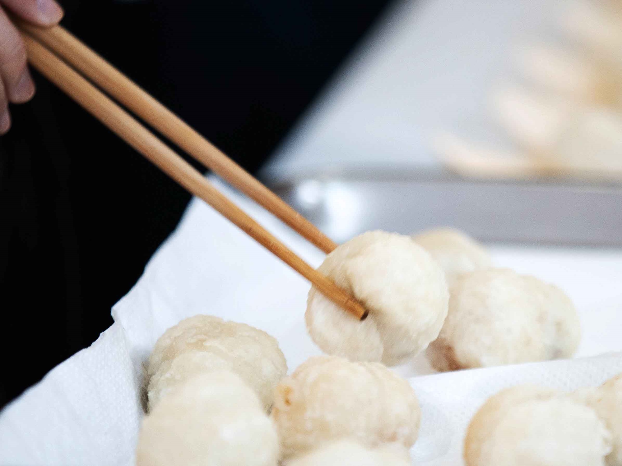 傳統市場販賣的商品隨著一年中的節日有所變化,接近元宵節時,就會在攤位上發現白白胖胖的元宵。