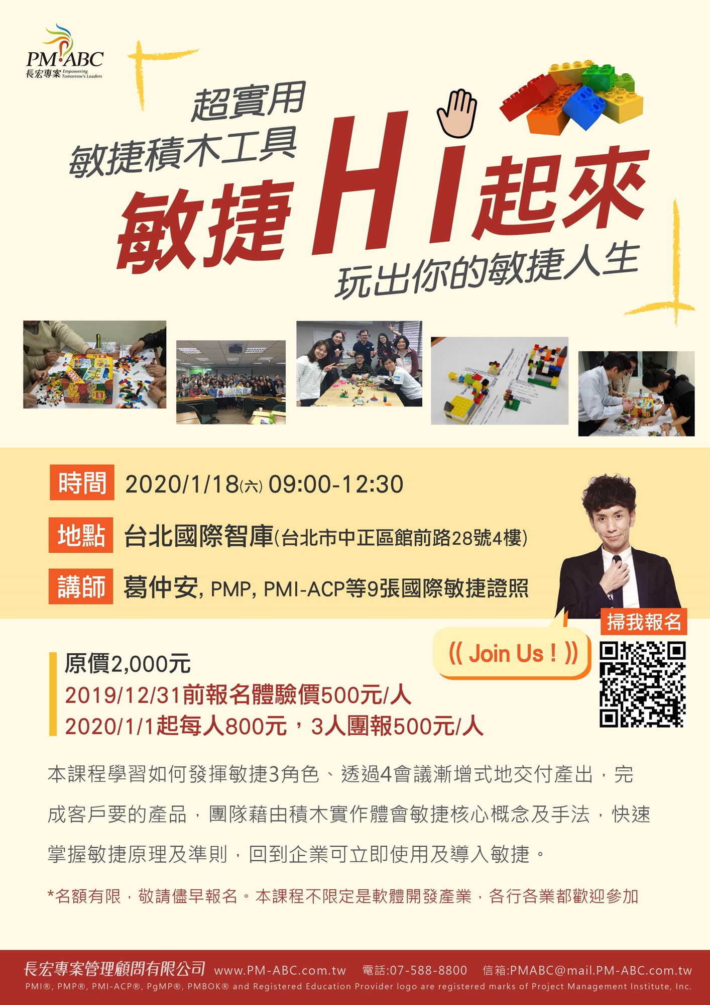 2019/12/31前報名體驗價500元/人 (原價$2000/人)