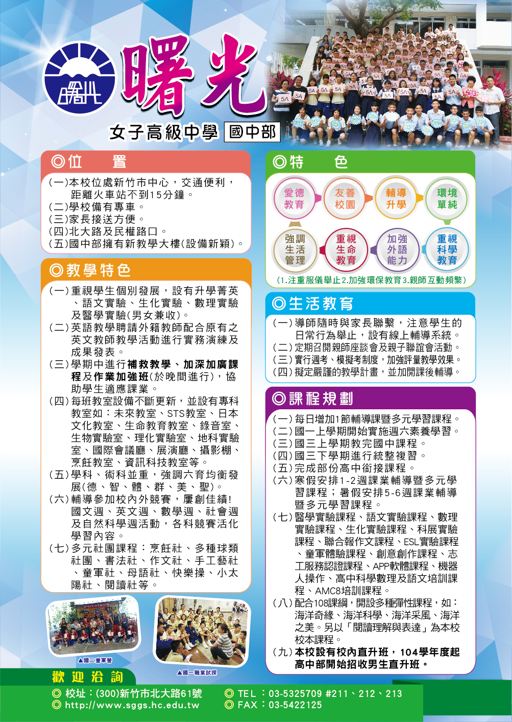109學年度新生入學報名抽籤暨小六適性學力大會考 曙光國中部招生訊息