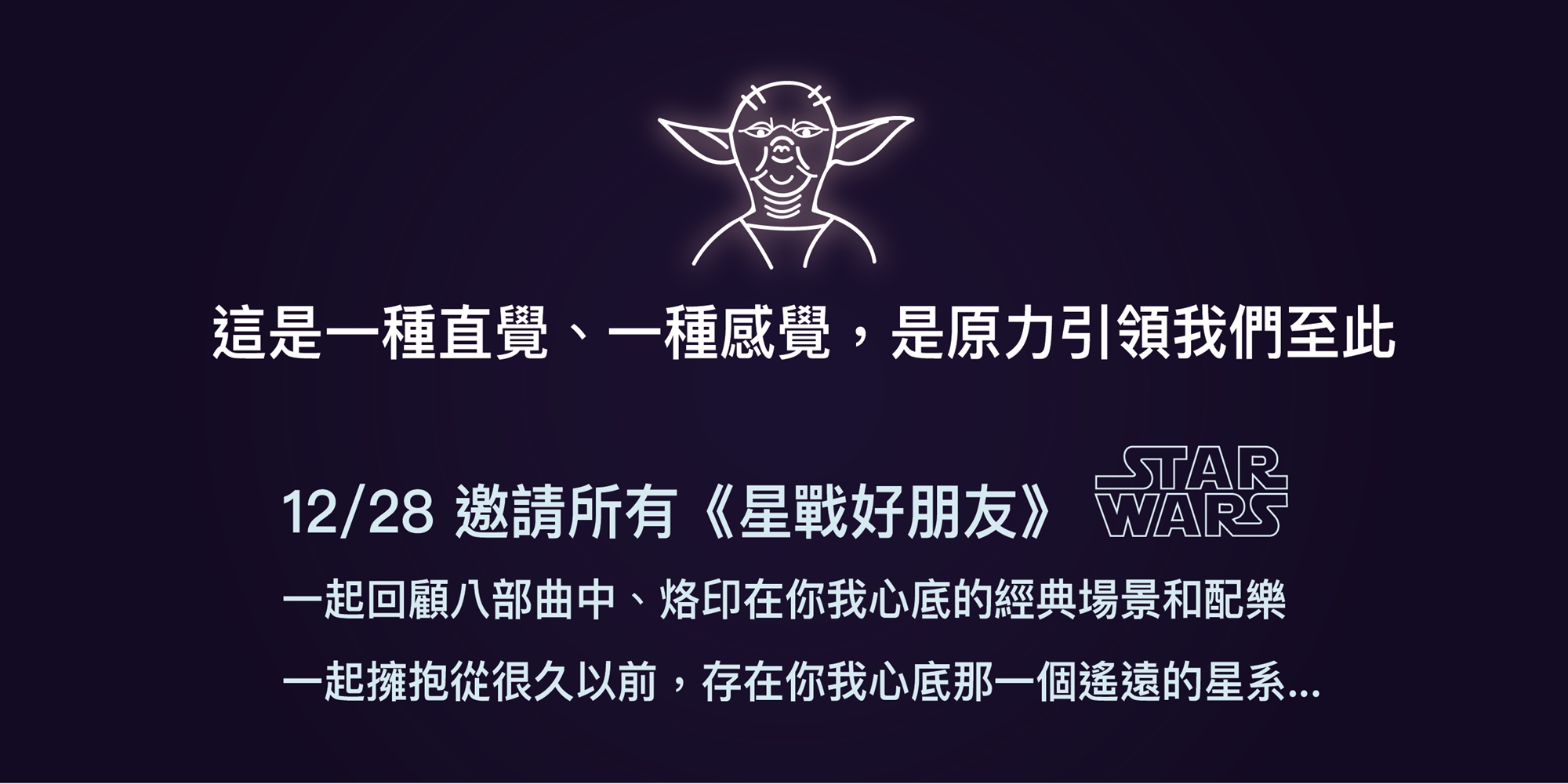在維基百科的宗教信仰分類,其中一個是「原力」。也許九部曲為星戰電影畫下一個暫時的句點,就讓我們的凝聚與分享、為星戰創造永續的連結。