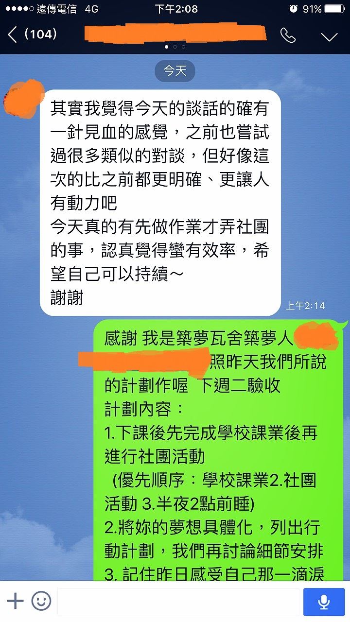 3.築夢人將會以聆聽、分享、建議的方式輔導真正有心想要改變現況的朋友改變,展開行動後直到朋友真正蛻變後,此時才是築夢人功成身退的時候(時間點由朋友們決定)