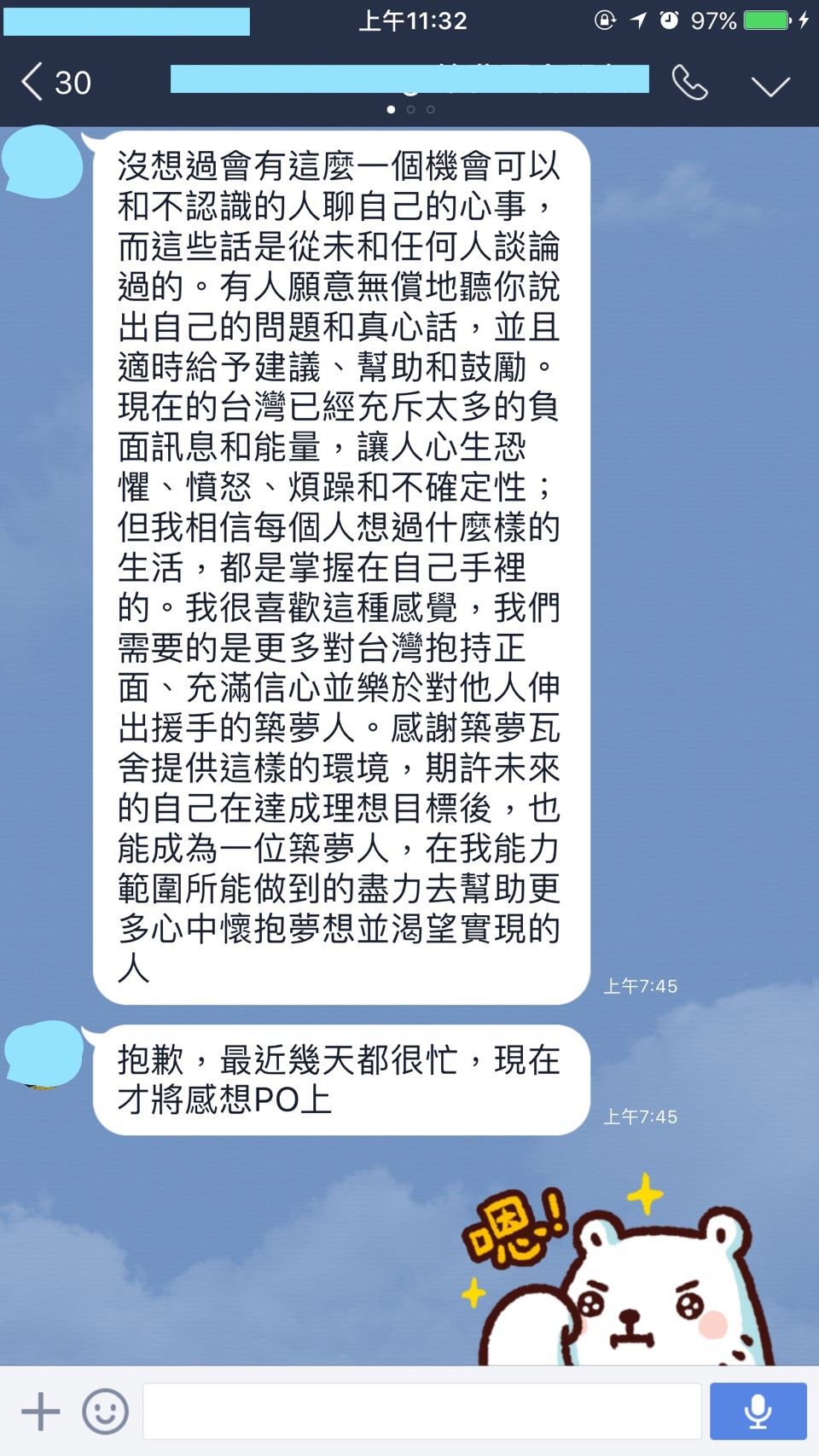 聊著聊著  我們開始學會分享   學會成長   學會改變    進而蛻變