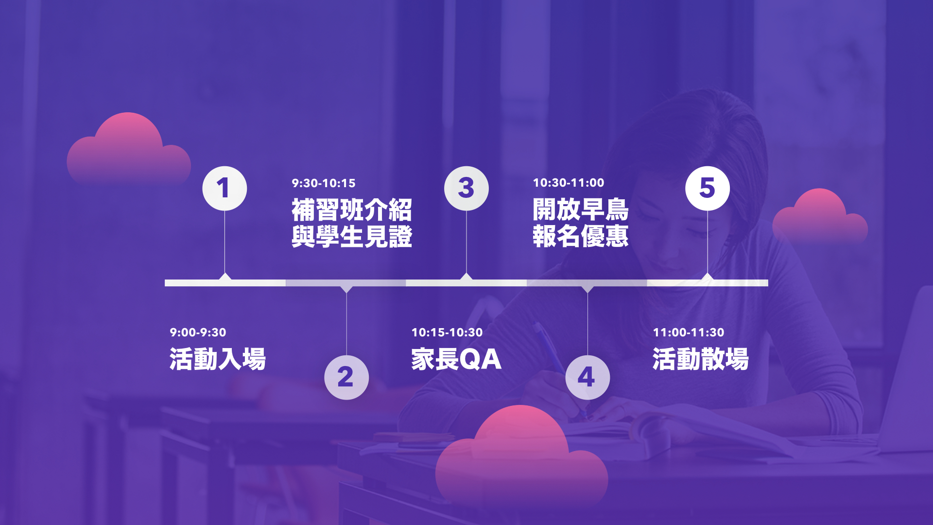 點、學費等詳細資訊。同時將會提供現場報名及劃位、獨家早鳥優惠價,說明會票價更可以現場折抵報名費!