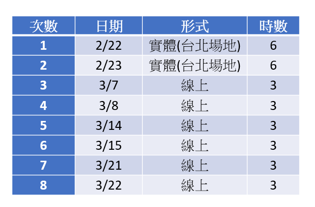 📣因應武漢肺炎疫情,課程規劃如有異動將於課程頁面公告並email通知📣
