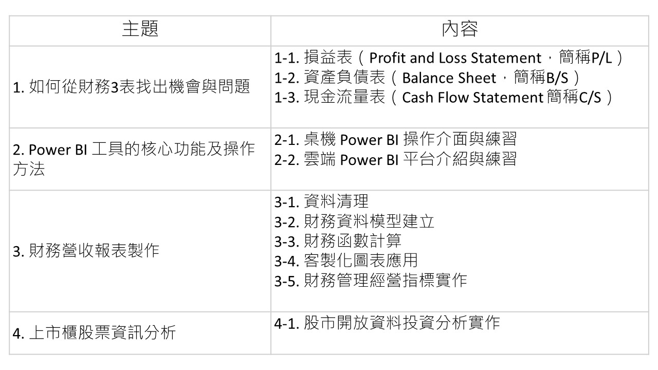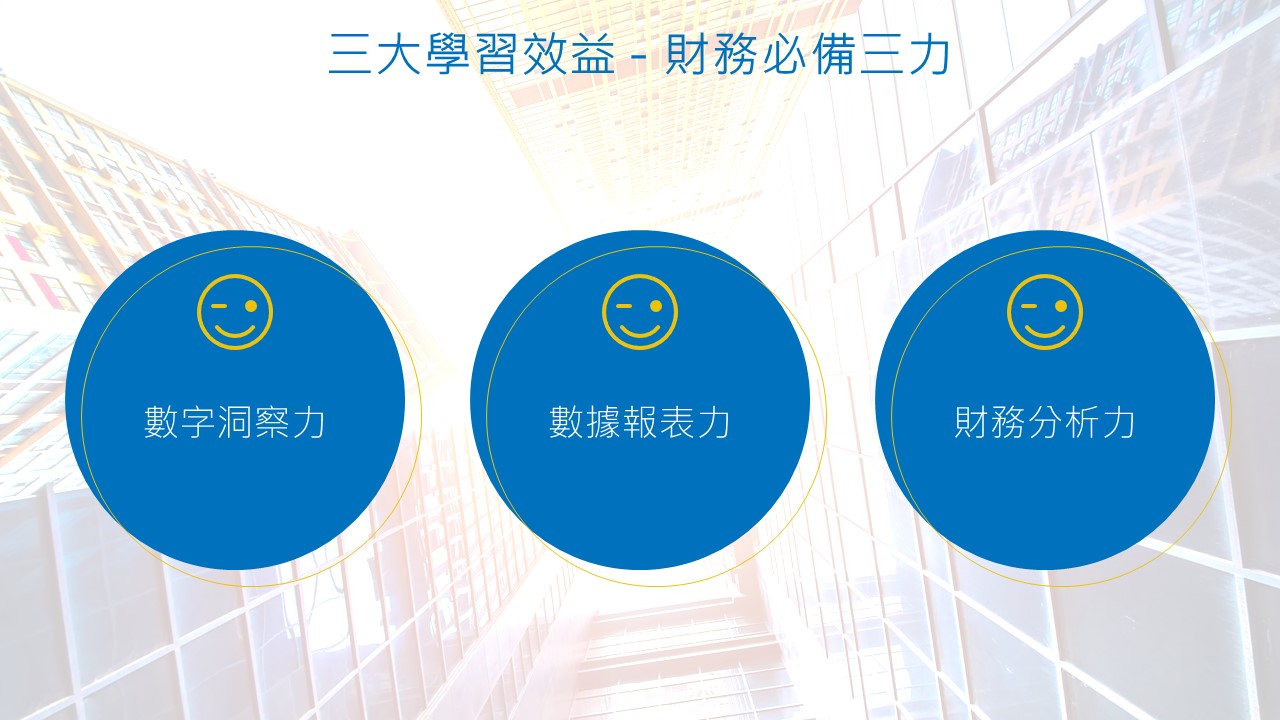 和外面開的純工具操作的課程不同的是,我們除了工具的使用教學外,更著重數據化分析的邏輯與流程,及如何以財務角度來做商業洞察與策略擬定。