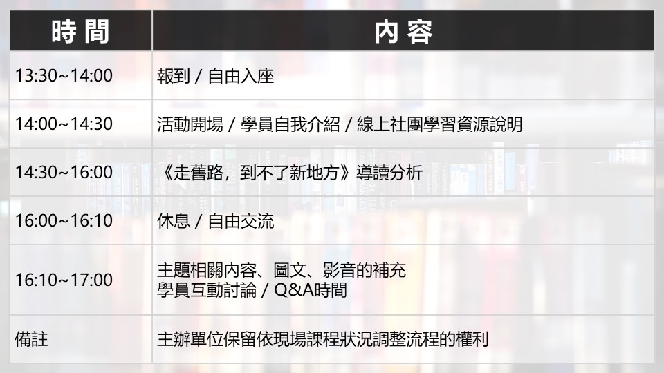 5. 喜歡閱讀、學習、分享的朋友,皆歡迎報名參加