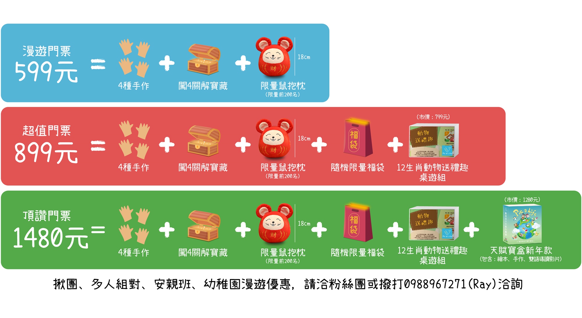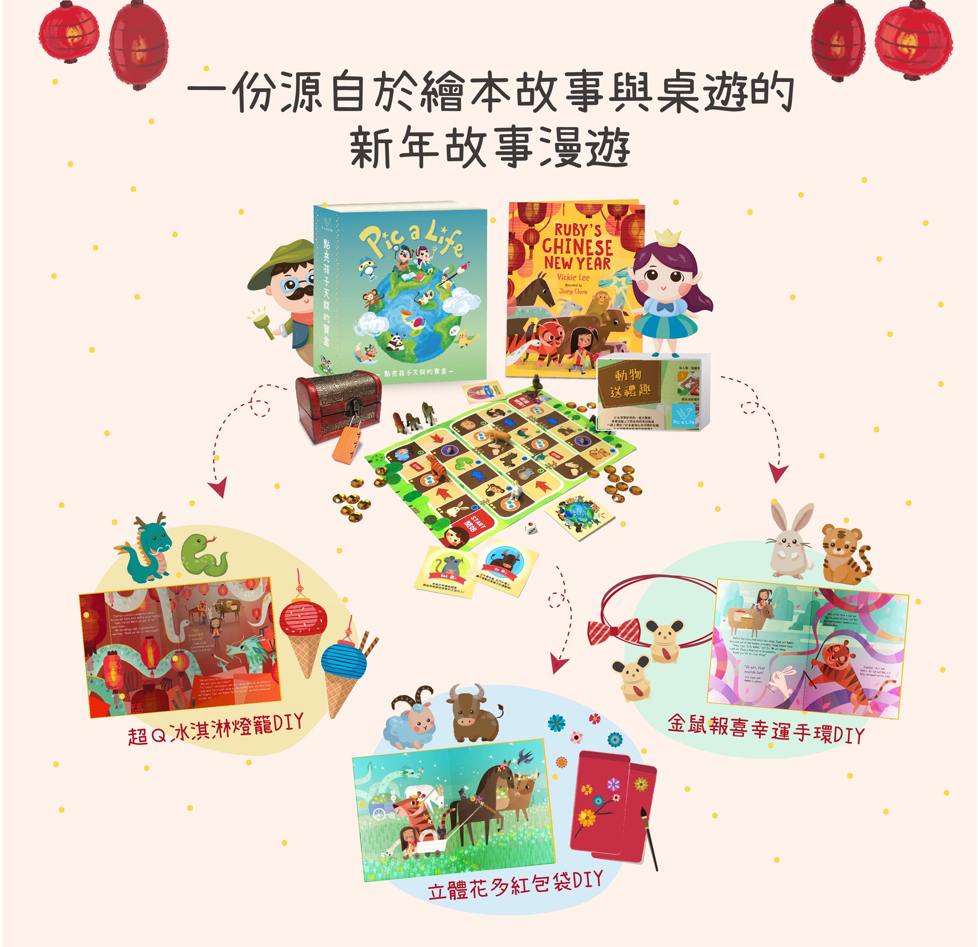 (4款手作+闖關解寶藏+超Q福氣鼠+超值福袋+12生肖桌游)