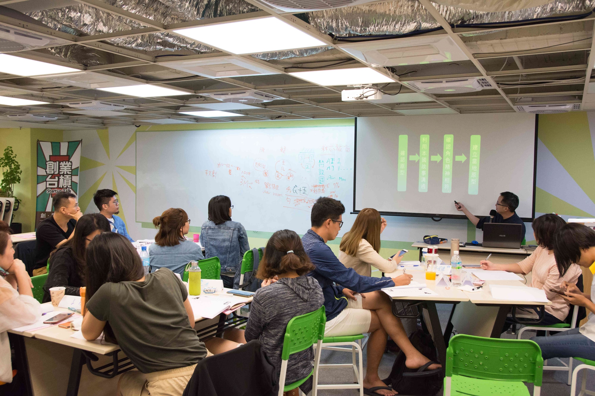 課程大多是實作型工作坊,透過實作模擬企業創新創意所需的情境,帶動學員從做中學,有效有趣有創意。