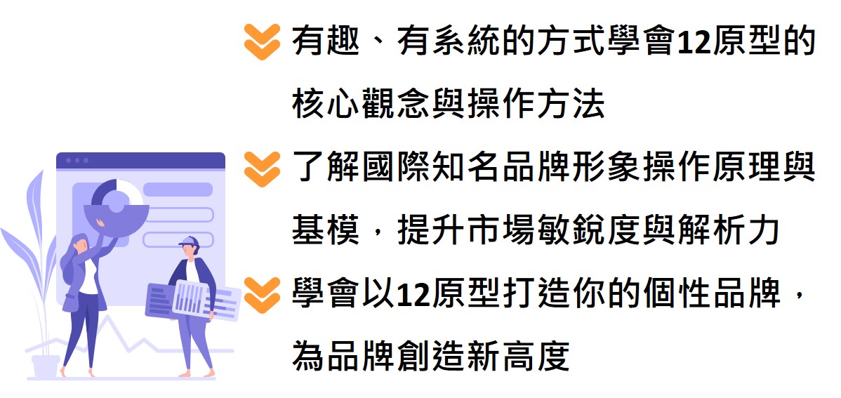 而你是否曾注意過,當你想起麥當勞,立刻會浮現繽紛、善良、親切的感覺;當你想起Nike,就會想到追求夢想、勇往直前的英雄;當你想到Ikea,就會想到創意、有創造力的…。以上之所有會有這樣的感覺,共通之處皆來自「品牌擁有鮮明個性與形象」。而自己的品牌該如何打造獨特的個性,找到品牌最佳定位?那你絕不能錯過12故事角色原型理論!