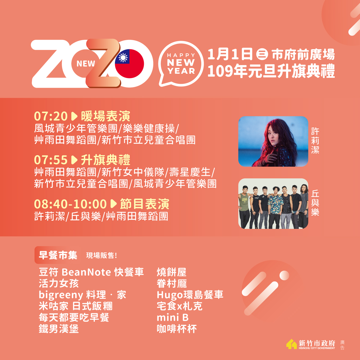 活動力邀知名歌手及樂團前來表演,包括歌手許莉潔及丘與樂樂團,還有在地知名團體艸雨田舞蹈團、風城青少年管樂團、新竹市立兒童合唱團、新竹女中儀隊等。除此之外,暖場演出還有一位新竹市最具代表的行銷大使【河馬樂樂】到場與元旦壽星小朋友們一起跳舞唷!