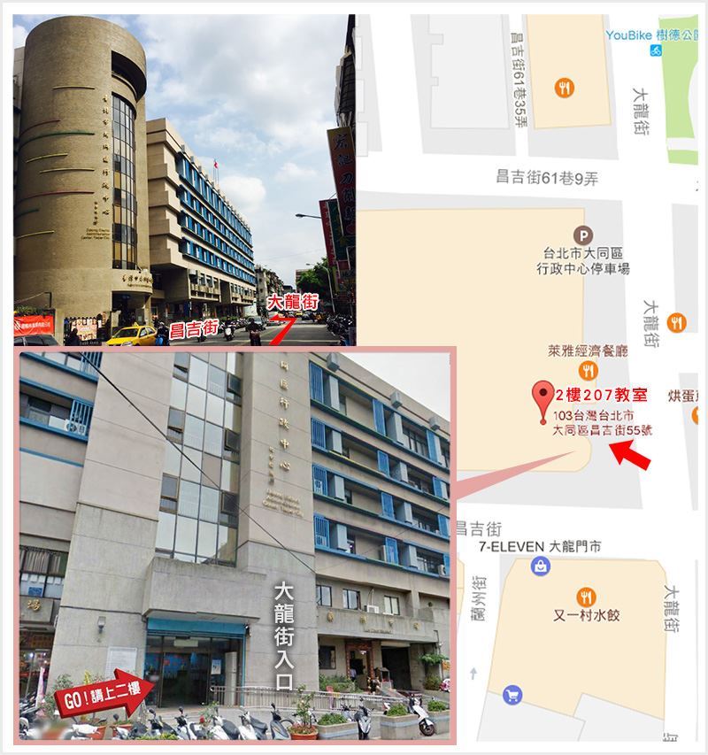 台北市大同區昌吉街55號2樓207教室 (蘭州市場2樓 路跑協會隔壁)