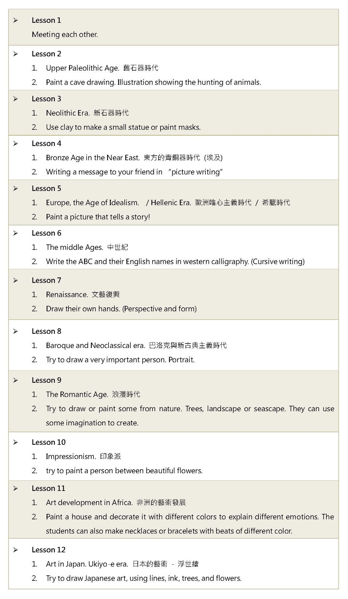 // 2020上半年度 Teacher will 英文創意畫畫課程大綱 //
