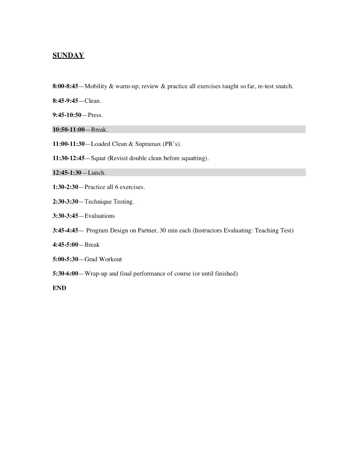 要成為RKC教練,報考者必須展現出安全高效的完成技術動作的能力。為保證報考者能夠正確完成課上所學動作,考官會在課程的最後部分對報考者進行如下練習測試: