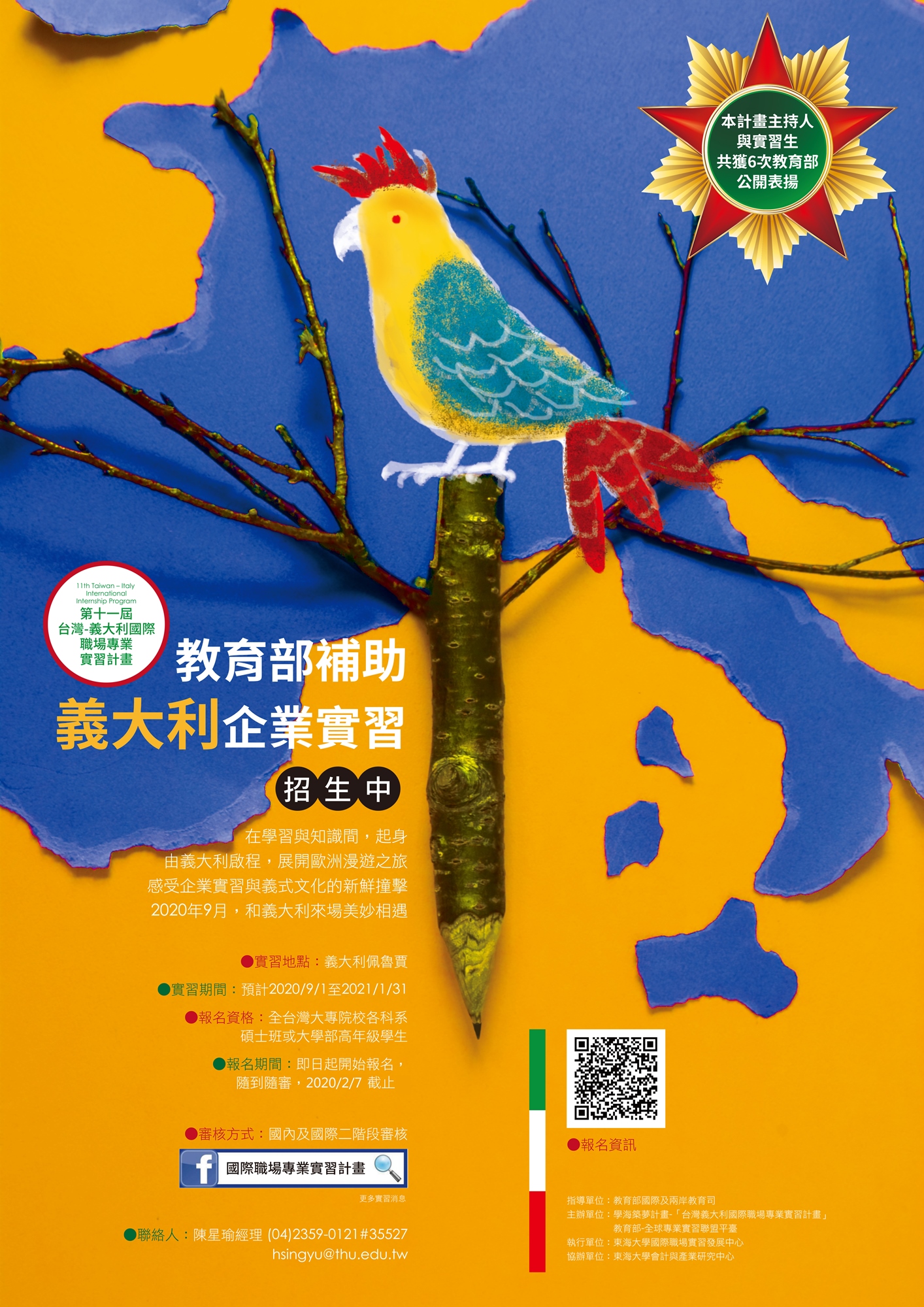 聯絡人:東海大學國際職場實習發展中心 陳星瑜經理 04-23590121轉35527 ; hsingyu@thu.edu.tw
