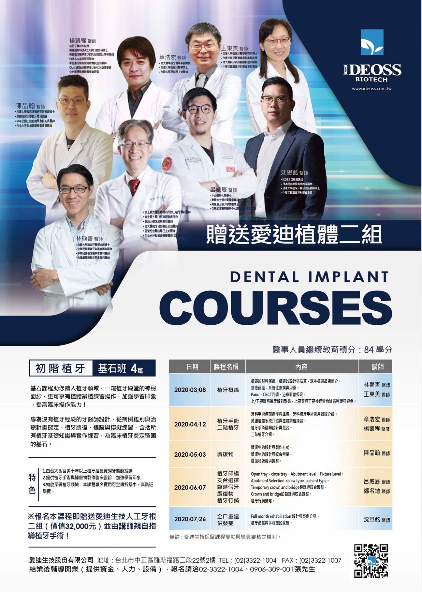 - 原定於3/8的植牙概論課程,因講師個人因素,授課日期改為3/15(日),造成不便還請見諒!