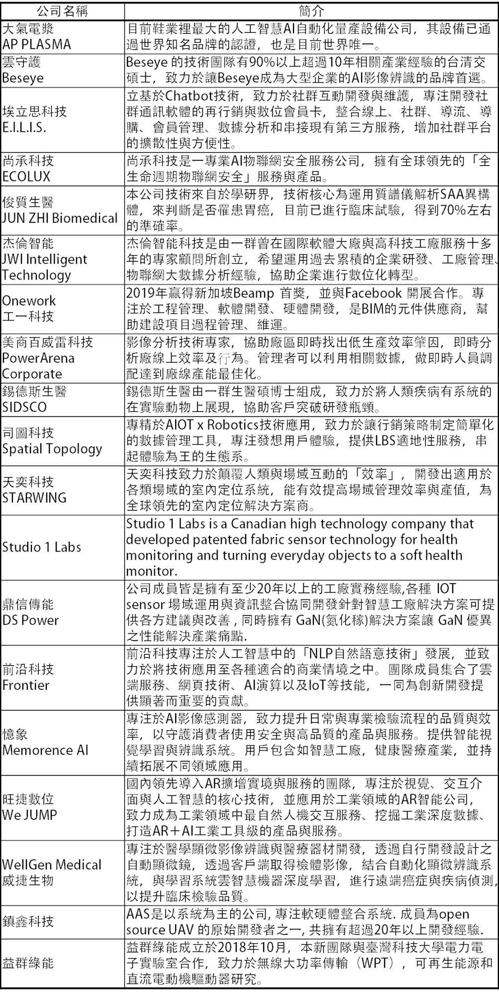 共創企業:京城銀行、聯華電子智慧製造處、邁特電子、奇景光電、奇美醫院、台灣受恩、聯華生技、新代企業、晶元光電、友上科技、高雄捷運、直得科技