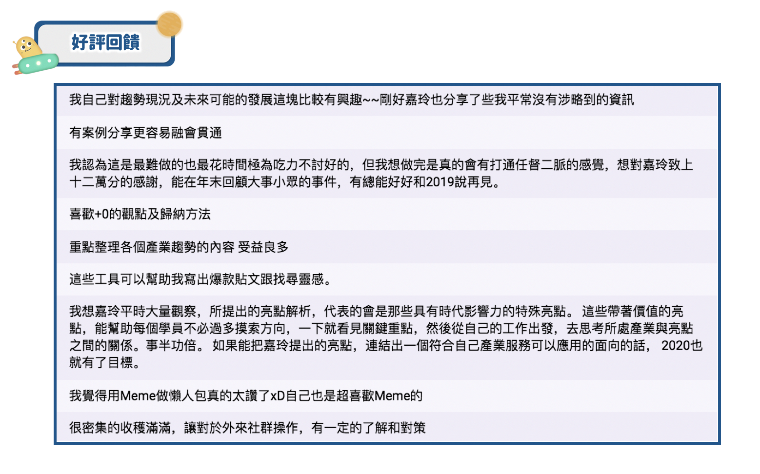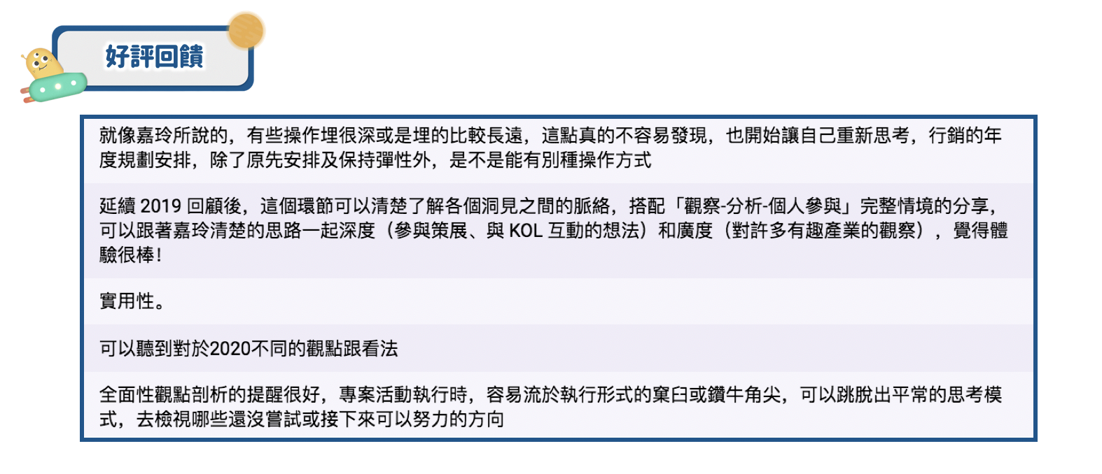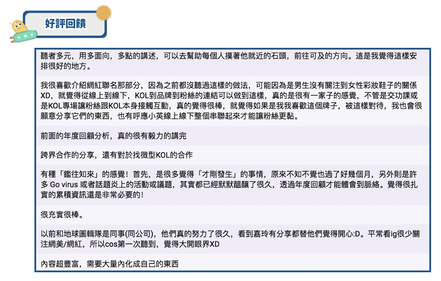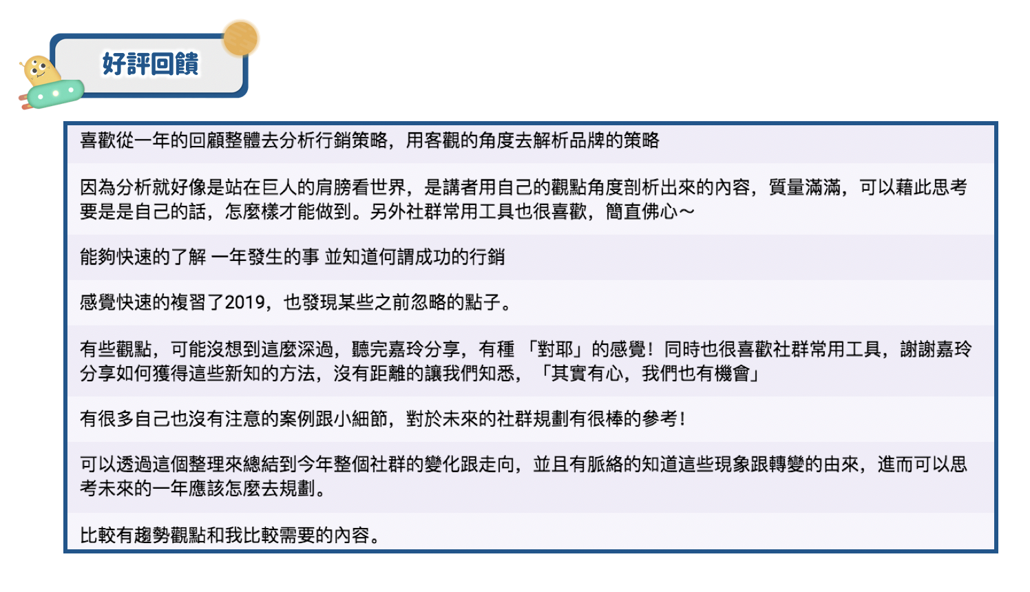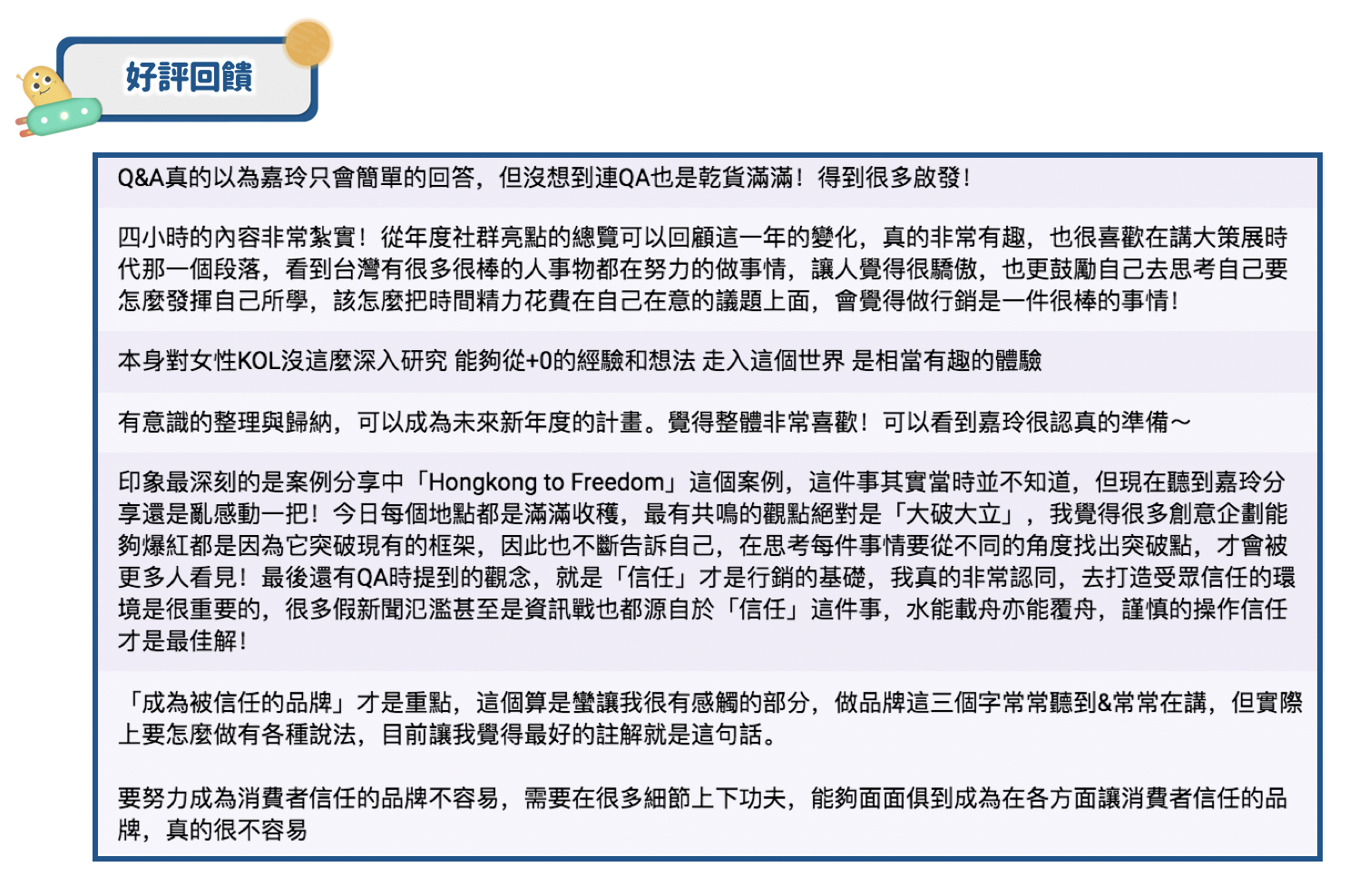❛ 2018 年,嘉玲選擇不用募資形式,先飛去中國參加「騰訊大會」「新榜大會」「新媒體營銷深度分享會」三個盛會,並將三個盛會的內容整理成《第三屆新媒體營銷深度分享會——增長太難,怎麼玩?》,票券 48 小時完售,為同年的大盛事做知識打底!