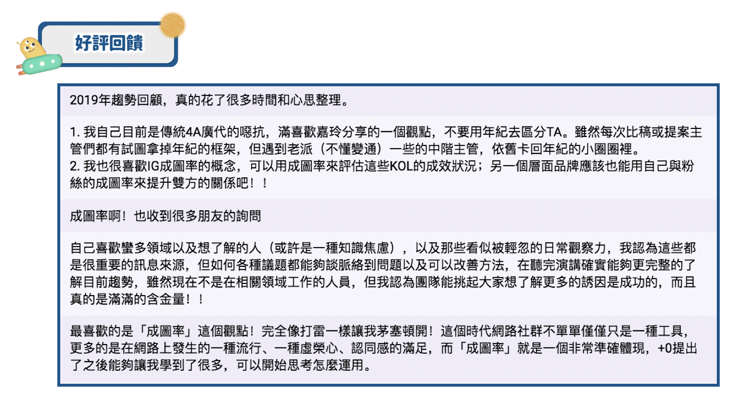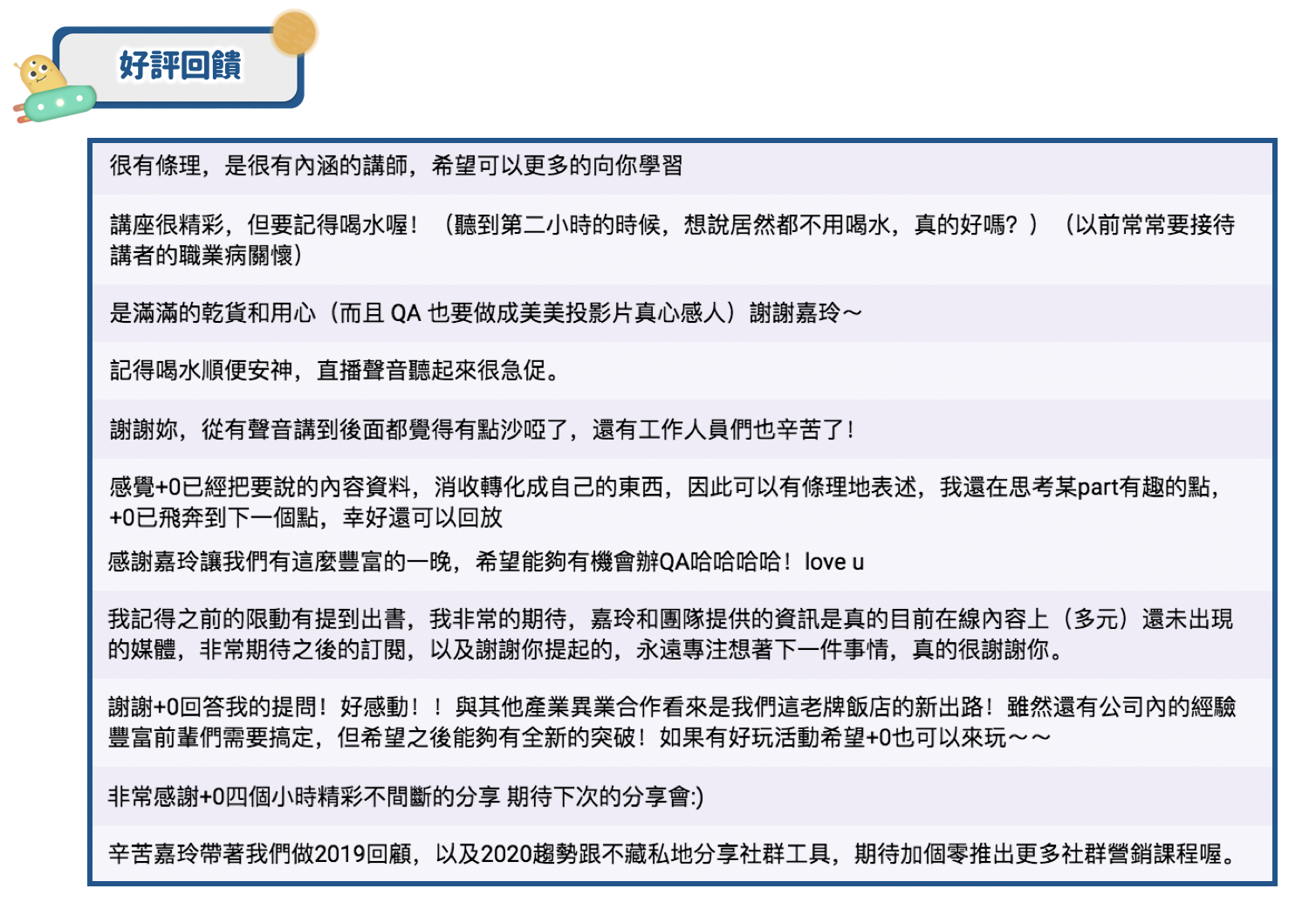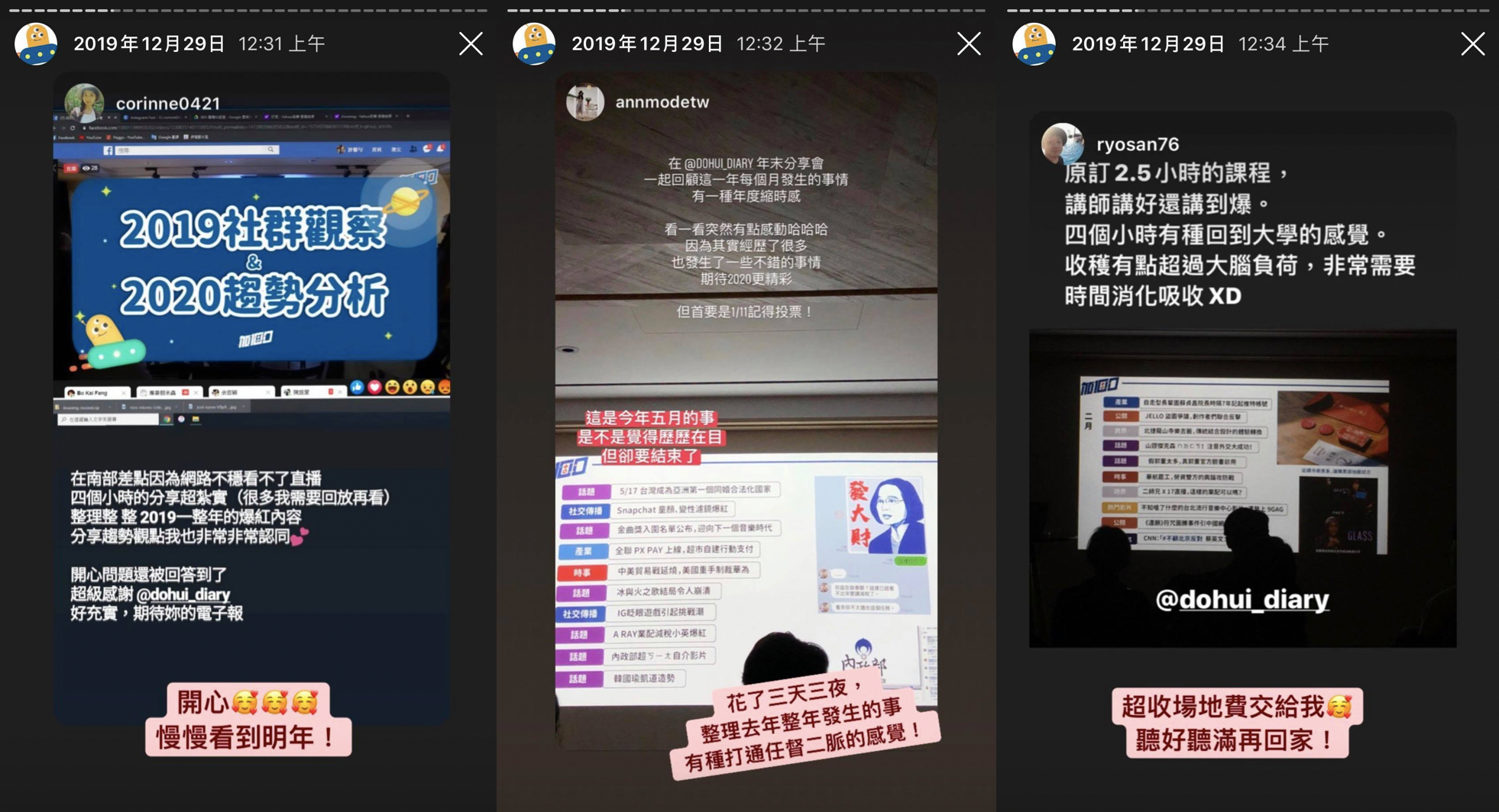 ❛ 2016 年,首次以群眾募資形式進行講座內容變現的《第一屆新媒體營銷深度分享會》揭開序幕,幸運的不到 24 小時募集到所有經費,總贊助人數 228 人,從中累積臉書社團《新媒體營銷深度分享會》的群眾基礎,至今已匯聚 12,000 多名成員!