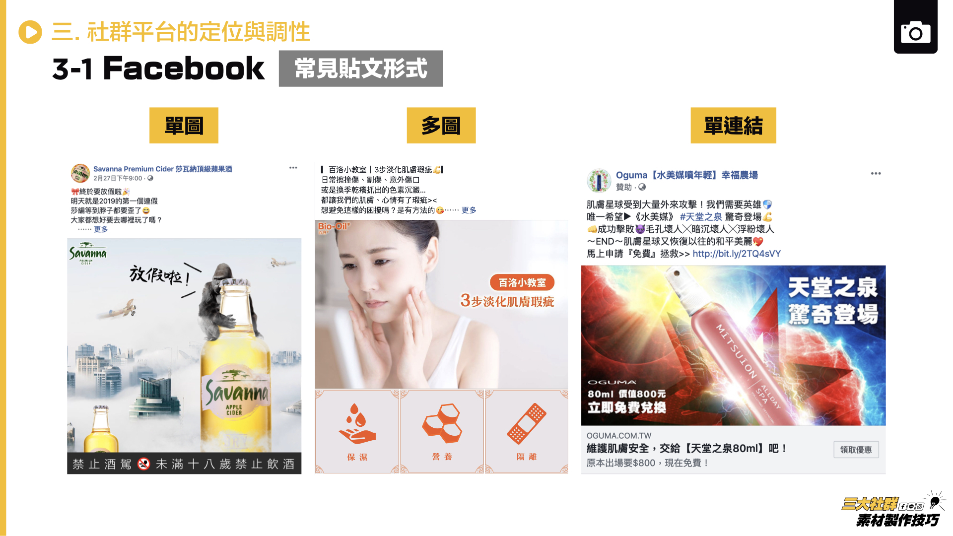 實戰與理論並重的課程,3小時裡滿滿都是精華,設計的法則、平台調性、小技巧分享通通都有!素材該注意的事情也一併告訴你!