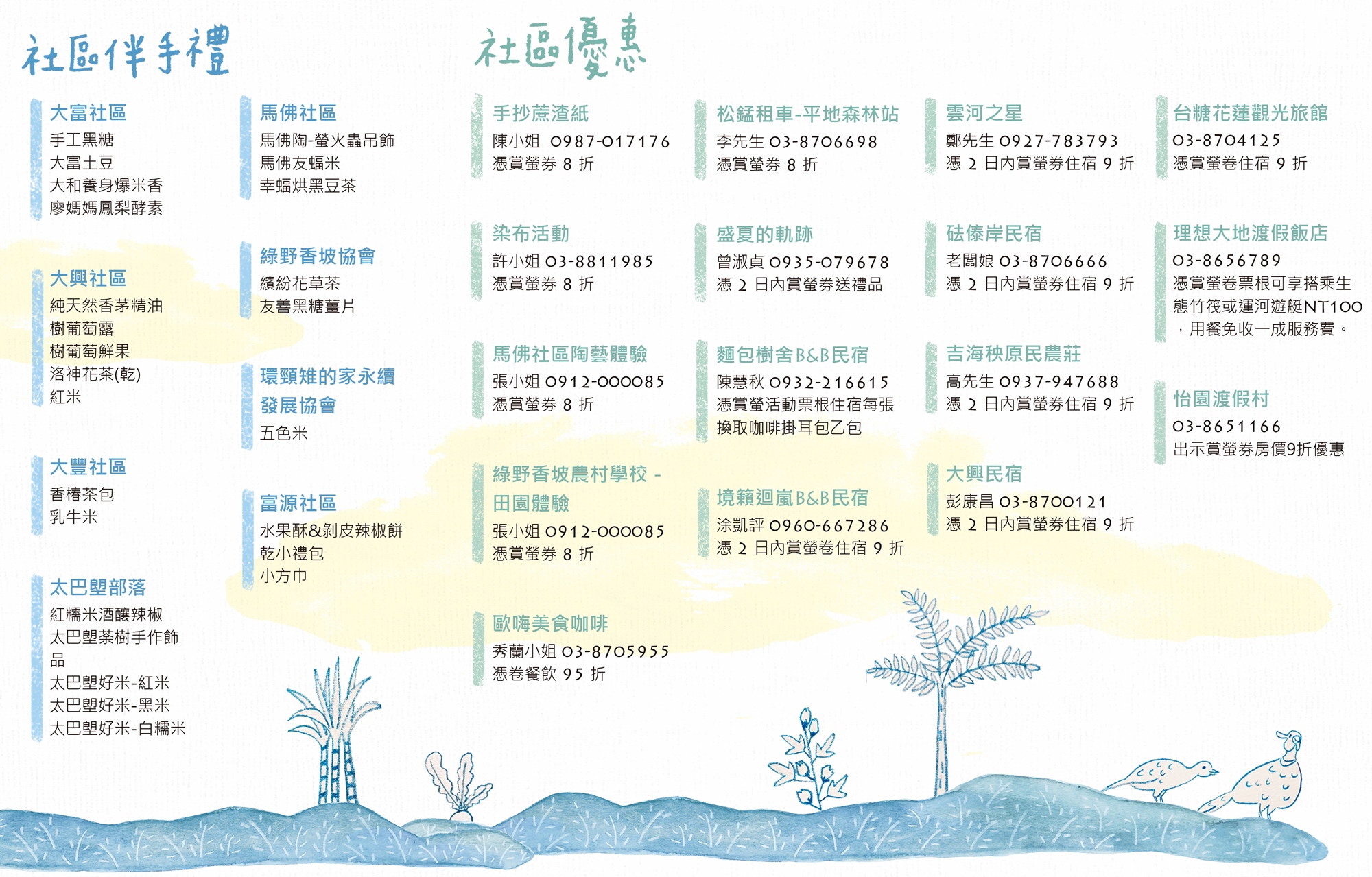 (費用包含生態導覽解說服務與在地社區伴手禮,伴手禮將視當日活動現場發放。旅宿業者,請附公司名稱及電話,電子郵件寄:pingsen001@gmail.com,即可取得專頁報名系統。)