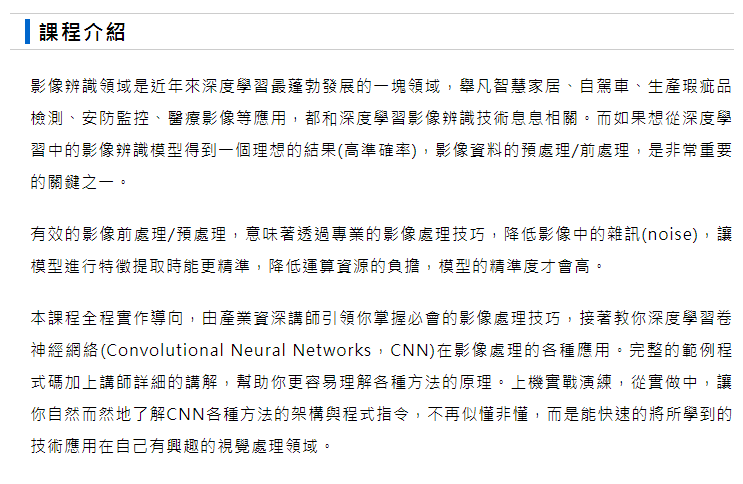 【AI人工智慧電腦視覺系列課程】A I 深度學習與影像辨識實戰[免費諮詢]