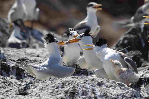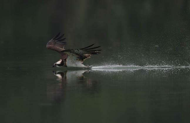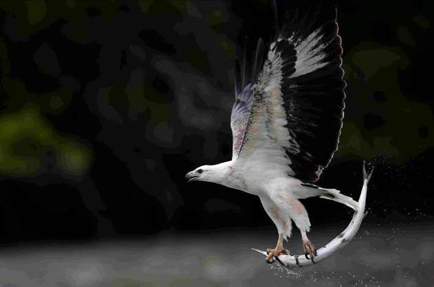 本次展覽作品有,全世界僅剩不到一百隻、瀕臨絕種、俗稱神話鳥的黑嘴端鳳頭燕鷗,在無人島上甜蜜求偶的珍貴照片;有終身一夫一妻、癡情的花冠犀鳥為了覓食給躲在數百公尺高的樹洞育雛的母鳥,盛開翅膀飛舞在林間的英姿。公紅綬帶躍水的美姿彷彿神話中的精靈;身材巨大、全身雪白的白腹海鵰宛如明月般動人的飛舞在海上。當牠捕獲秋刀魚揚長而去時,恰如圓月彎刀。