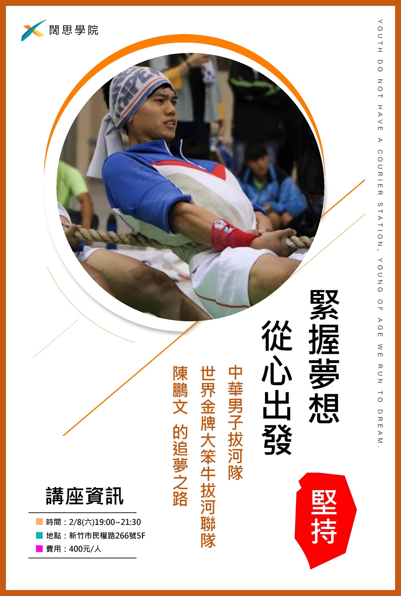 本次名人講座,特別邀請『大笨牛世界金牌拔河隊』隊長陳鵬文來到新竹。