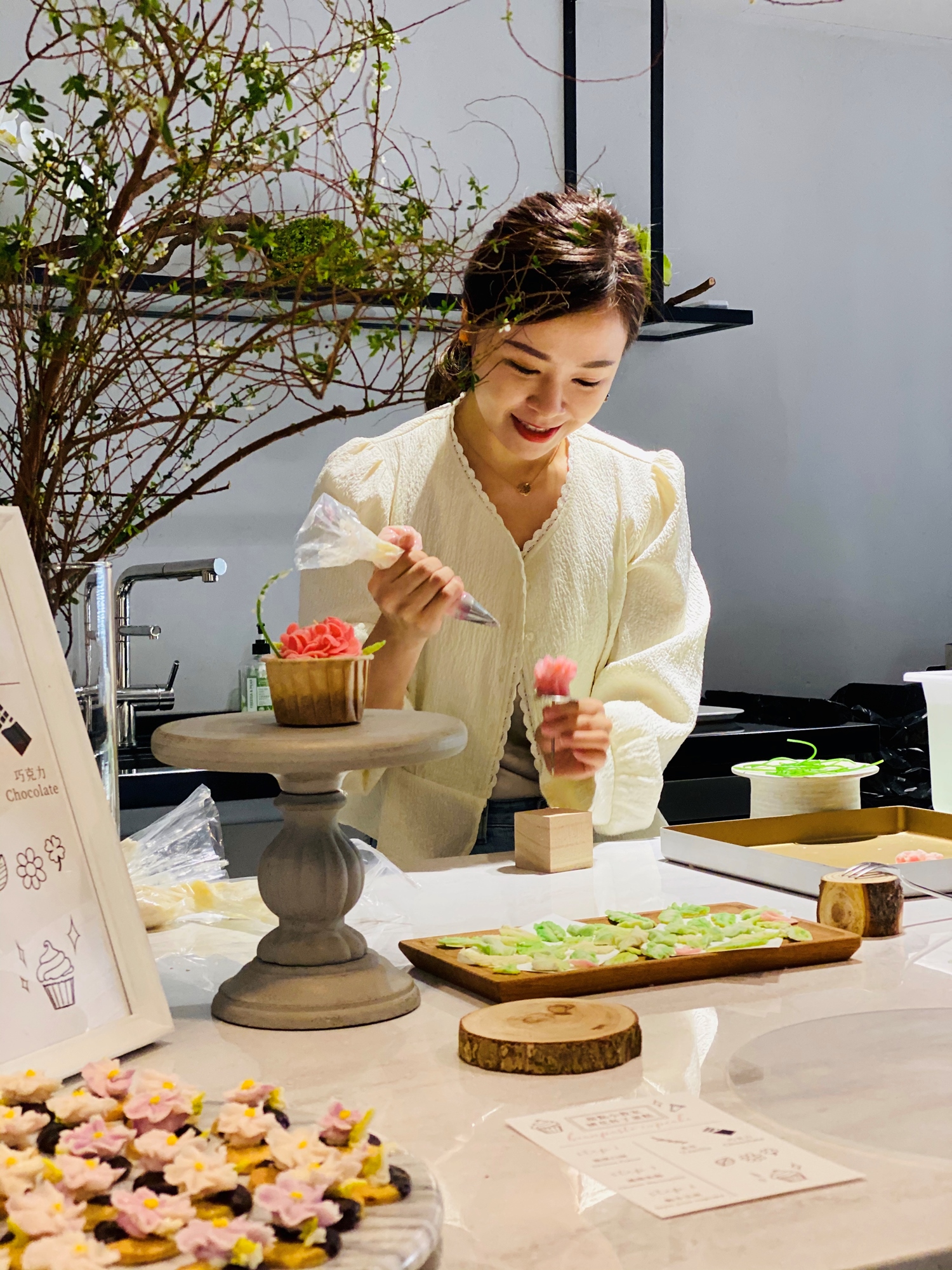 這次的體驗課程『心尼甜點工作室』的宣亦老師將帶領我們由淺入深的學習基本的韓式擠花技巧,如何掌控讓自己也能在短時間內完成完成質感滿分的牡丹花以及裝飾葉片。