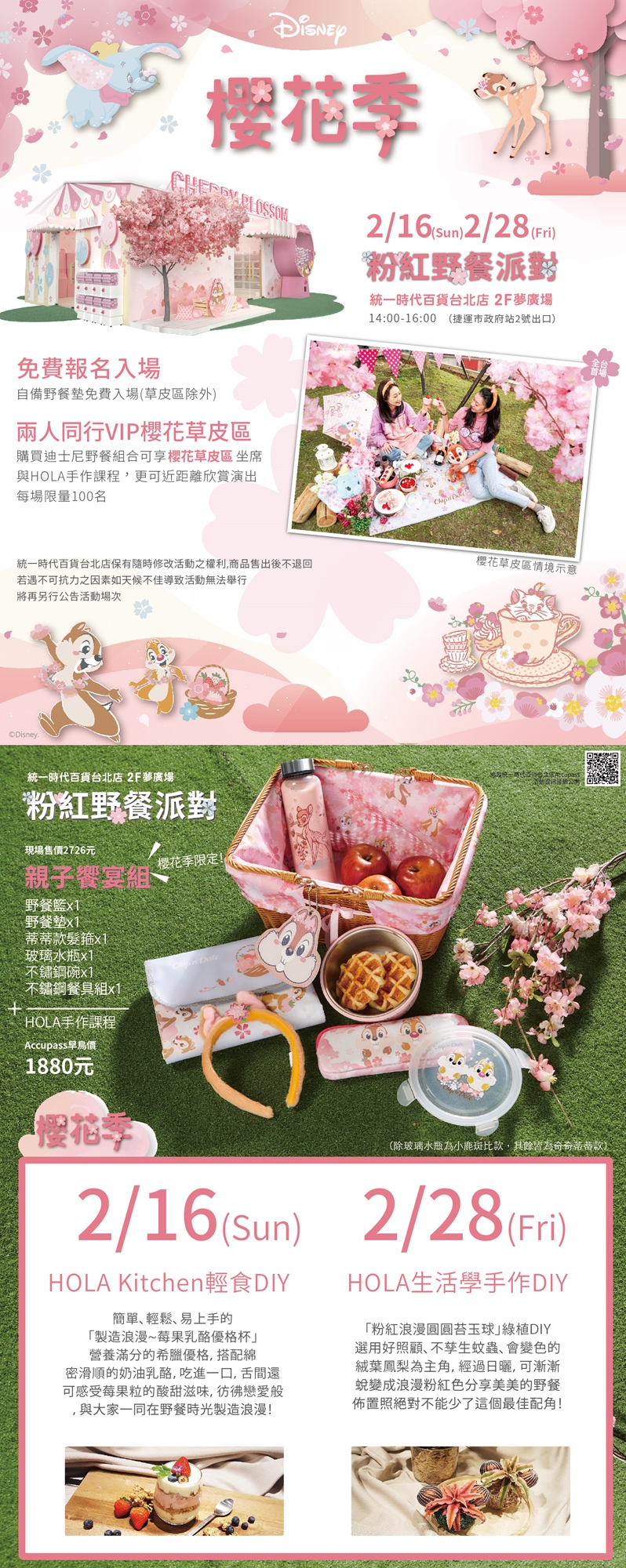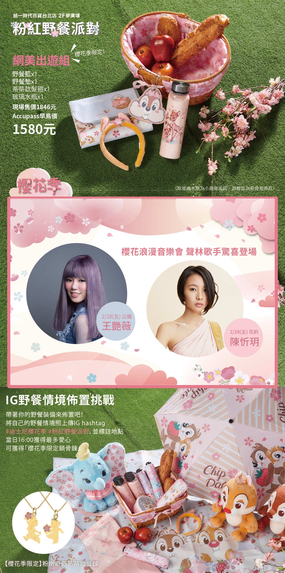 購買迪士尼櫻花季限定玩偶組,同享粉紅野餐派對「櫻花草皮區雙人坐席」哦!